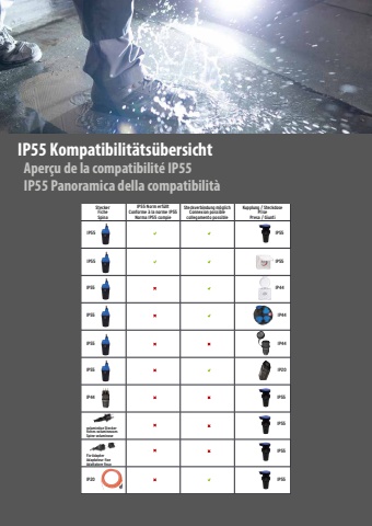 Bei Fragen steht Ihnen unser Aussendienst gerne zur Verf%u00fcgung. Sidtit%u00e9tttit%u00e0tdiitiG%u00fcltig f%u00fcr die Schweiz %u2022 Valable pour la Suisse %u2022 Valido per la Svizzera%u00dcbersicht / Sommaire / PanoramicaNeue Norm IP55 (SN441011) f%u00fcr Stecker und SteckdosenNouvelle norme IP55 pour les fiches et les prisesLa nuova direttiva IP55 (SN441011) per spine e prese del systema svizzeroStecker Fiche SpinaIP55 Norm erf%u00fcllt Conforme %u00e0 la norme IP55 Norma IP55 compie Steckverbindung m%u00f6glich Connexion possiblecollegamento possibleKupplung / SteckdosePrisePresa / GiuntiIP55IP55IP55IP55 IP44IP55IP55IP55IP44IP44IP55 IP20IP44 IP55IP55volumin%u00f6se Steckerfiches volumineusesSpine voluminoseFix-AdapterAdaptateur fixeAdattatore fissoIP20IP55IP55Aper%u00e7u de la compatibilit%u00e9 IP55IP55 Kompatibilit%u00e4ts%u00fcbersichtIP55 Panoramica della compatibilit%u00e0