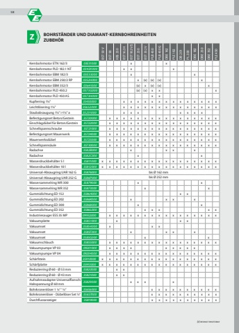 BST 50 V BST 90 KBS 250 BST 162 H BST 182 V/S BST 250 BST 352 V PLB 450 PLB 450 G DBE 162 PLE 182 DB 201 PL 200 DBE 182 DBE 250 DBE 352 PLE 45003E31000 x x0343X000 x x x03E33000 x x0352H000 x (x) (x) (x) x03641000 (x) x (x) (x) x0373G000 (x) (x) x x x0373H000 x x35450000 x x x x x x x x x x x x x x35652000 x x x x x x x x x x x x x x35231000 x x x x x x x35720000 x x x x x x x x x x x x x x x x35722000 x x x x x x x x x x x x x x x x35721000 x x x x x x x x x x x x x x x x35724000 x x x x x x x x x x x x x x x x35725000 x x x x x x x x x x x x x x x x35730000 x x x x x x x x x x x x x x x x3582B000 x x x x3582C000 x x35811000 x x x x x x x x x x x x x x x x x35812000 x x x x x x x x x x x x x x x x x358760003586P00035879000 x x35873000 x x3586A000 x x3586K000 x x x x35868000 x x3586L000 x x x x x09932000 x x x x x x x x x x x x x x x x35851000 x x x35854000 x x x3585F000 x x x x3585G000 x x35855000 x x x x x x x x x x x x x x x x09201000 x x x x x x x x x09204000 x x x x x x x x x x x x x x x x35910000 x x x x x x x x x x x x x x x x x35913000 x x x x x x x x x x x x x x x x x35820000 x x35821000 x x35829000 x x x x35656000 x x x x x x x x x x35657000 x x x x x x x x x x35819000 x x x x x x x x x xBOHRST%u00c4NDER UND DIAMANT-KERNBOHREINHEITEN Z ZUBEH%u00d6R(X) BEDINGT EINSETZBARKernbohrmotor ETN 162/3Kernbohrmotor PLD 182.1 NTKernbohrmotor EBM 182/3Kernbohrmotor EBM 250/2 RPKernbohrmotor EBM 352/3Kernbohrmotor PLD 450.2Kernbohrmotor PLD 450 ASKupferring 1%u00bc\Leichtl%u00f6sering 1%u00bc\Staubabsaugung 1%u00bc\Befestigungsset Beton/GesteinEinschlagd%u00fcbel f%u00fcr Beton/GesteinSchnellspannschraubeBefestigungsset MauerwerkMauerwerksd%u00fcbelSchnellspanns%u00e4uleRadachseRadachseWasserdruckbeh%u00e4lter 5 lWasserdruckbeh%u00e4lter 10 lUniversal-Absaugring UAR 162 GUniversal-Absaugring UAR 252 GWassersammelring WR 300Wassersammelring WR 352Gummidichtung ED 152Gummidichtung ED 202 Gummidichtung ED 300Gummidichtung ED 352Industriesauger ESS 35 MPVakuumplatteVakuumsetVakuumsetVakuumsetVakuumschlauchVakuumpumpe VP 03Vakuumpumpe VP 04Sch%u00e4rfsteinSch%u00e4rfplatteReduzierring %u00d8 60 - %u00d8 53 mmReduzierring %u00d8 60 - %u00d8 43 mmAufnahmeadapter Universalfl ansch/Halsspannung %u00d8 60 mmBohrkronenl%u00f6ser 1 %u00bc%u201c + %u00bd%u201cBohrkronenl%u00f6ser - D%u00fcbell%u00f6ser Set %u00bd%u201cDurchfl ussanzeigerbis %u00d8 252 mmbis %u00d8 162 mm58