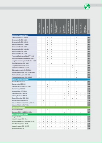 Maler/Stuckateure Elektriker Fliesenleger Fu%u00dfbodenleger Sanit%u00e4r-/Heizungs-/ L%u00fcftungsbau Kaminbau Dachdecker/ Zimmermann Galabau/Steinmetz Trockenbau Hoch-/Tiefbau Stahl-/Metallbau Bohr- und S%u00e4gebetriebe SeiteSchleifen/Fr%u00e4sen/Gl%u00e4ttenEckenschleifer EES 1400-3 x x x 86Betonschleifer EBS 120.1 x x x 87Betonschleifer EBS 125.4 O x x x 88Betonschleifer EBS 125.4 RO x x x 88Betonschleifer EBS 1802 x x x 89Betonschleifer EBS 1802 SH x x x 89Betonschleifer EBS 180 H x x x 90Betonschleifer EBS 235.1 x x x 92Putz- und Sanierungsfr%u00e4se EPF 1503 x x x x 93Putz- und Sanierungsfr%u00e4se EPF 200-3 x x x x 94Langhals-Sanierungsschleifer ELS 125 D x x x 96Oberfl%u00e4chenfr%u00e4se EOF 100.1 x x x 97Langhalsschleifer ELS 225.1 x x 100Trockenbauschleifer ETS 225 x x 101D%u00e4mmplattenschleifer EWS 400 x x 101Putzbearbeitungsm. EPG 300 A (Akku) x x 102Putzbearbeitungsm. EPG 400 x x 103Putzbearbeitungsm. EPG 400 WP x x 103S%u00e4gen/Trennen/SchlitzenRohr-Cutter ERC 350 x x x x 107Diamants%u00e4ge EDS 125 x x 108Trenntische ETT 700/ETT 1200 x x 109Diamants%u00e4ge EDS 181 x x x x 110Universals%u00e4ge EST 350.2 x x 112Trennsystem ETR 400.1 P x x x x x 114Trennsystem ETR 400.2 P x x x x x 116Doppelblatts%u00e4ge EDB 480.1 x x x 117Mauerschlitzfr%u00e4se EMF 125.2 x 118Mauerschlitzfr%u00e4se EMF 150.1/150.1 P x x 119Mauerschlitzfr%u00e4se EMF 180.2 x 120Polieren/SatinierenPolierer WPN 180 x x 126Satinierm. ESM 1310/ESM 1311 Set x x 127Absaugen/PumpsaugenSauger SS 1401 L x x x x x x x x x x x x 130Industriesauger DSS 25 A x x x x x x x x x x x x 131Industriesauger ESS 35 LP/ESS 35 MP x x x x x x x x x x x x 132Industriesauger DSS 25 M x x x x x x x x x x x x 134Industriesauger DSS 35 M iP x x x x x x x x x x x x 135Pumpsauger EPS 50 x x x 1367