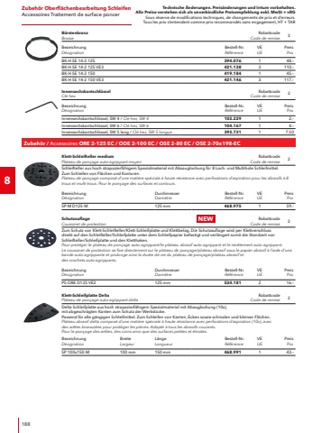 Technische %u00c4nderungen. Preis%u00e4nderungen und Irrtum vorbehalten.Alle Preise verstehen sich als unverbindliche Preisempfehlung exkl. MwSt + vRGSous r%u00e9serve de modifications techniques, de changements de prix et d%u2019erreurs. Tous les prix s%u2018entendent comme prix recommand%u00e9s sans engagement, HT + TAR243GeradschleiferMeuleuses droitesTechnische DatenLeistungsaufnahme710 WLeistungsabgabe420 WSpannung230 VFrequenz50/60 HzLeerlaufdrehzahl2%u2018500 %u2013 6%u2018500 1/minMax. Schleifk%u00f6rperdurchmesser50 mmWerkzeugaufnahmeSpannzangeKabell%u00e4nge4.0 mAbmessung LxBxH340 x 76 x 84 mmGewicht2.1 kgLieferumfang1x Spannzange228.6561x Anhalteklaue, SW 14254.9171x Einmaulschl%u00fcssel, SW 19104.914Caract%u00e9ristiques techniquesPuissance absorb%u00e9e2600 WPuissance utile1800 WTension230 VFr%u00e9quence50/60 HzVitesse de rotation %u00e0 vide2%u2018500 %u2013 6%u2018500 tr/minDiam%u00e8tre max. de la meule50 mmEmmanchementPince de serrageLongueur de c%u00e2ble4.0 mDimension LxlxH340 x 76 x 84 mmPoids2.1 kgEquipement de base1x pince de serrage228.6561x griffe d%u2018arr%u00eat, SW 14254.9171x cl%u00e9 %u00e0 fourche, SW 19104.914H 1105 VEBestell-Nr.R%u00e9f%u00e9renceGTINRabattcodeCode de remisePreisPrix710 Watt GeradschleiferMeuleuse droite 710 Watt269.95640302930772871625.%u2013 exkl. MwSt. hors TVA 0.56 vRGTARTechnische DatenLeistungsaufnahme800 WSpannung230 VFrequenz50/60 HzLeerlaufdrehzahl10%u2018600 %u2013 32%u2018000 1/minMax. Schleifk%u00f6rperdurchmesser50 mmSpannhalsdurchmesser43 mmGreifumfang147 mmWerkzeugaufnahmeSpannzangeKabell%u00e4nge4.0 mAbmessung LxBxH380 x 83 x 83 mmGewicht2.1 kgLieferumfang1x Spannzange530.0141x Gabelschl%u00fcssel, SW 17Caract%u00e9ristiques techniquesPuissance absorb%u00e9e2600 WTension230 VFr%u00e9quence50/60 HzVitesse de rotation %u00e0 vide10%u2018600 %u2013 32%u2018000 tr/minDiam%u00e8tre max. de la meule50 mmDiam%u00e8tre de collier de serrage43 mmCirconf%u00e9rence de pr%u00e9hension147 mmEmmanchementPince de serrageLongueur de c%u00e2ble4.0 mDimension LxlxH380 x 83 x 83 mmPoids2.1 kgEquipement de base1x pince de serrage530.0141x cl%u00e9 %u00e0 fourche simple, SW 17DGE 8-32Bestell-Nr.R%u00e9f%u00e9renceGTINRabattcodeCode de remisePreisPrix800 Watt Geradschleifer mitvariablem, hohem DrehzahlbereichMeuleuse droite 800 Watt %u00e0 haut vitesse522.27940302932403771440.%u2013 exkl. MwSt. hors TVA 0.56 vRGTARSpannzange f%u00fcr / Pince de serrage pour H 1105 / H 1127 VE SpannzangePince de serrageRabattcodeCode de remise2mit Spannmutteravec ecrou de serrageBezeichnungD%u00e9signationDurchmesserDiam%u00e8treBestell-Nr.R%u00e9f%u00e9renceVEUEPreis PrixSPZ-H D33 mm229.741155.%u2013SPZ-H D1/41/4\229.776156.%u2013SPZ-H D66 mm228.656140.%u2013SPZ-H D88 mm229.768155.%u2013Spannzange f%u00fcr / Pince de serrage pour DGESpannzangePince de serrageRabattcodeCode de remise2mit Spannmutter. Passend f%u00fcr Geradschleifer DGE 8-32 und DGE 25 18.0-EC.avec ecrou de serrage. Convient aux meuleuses droites DGE 8-32 et DGE 25 18.0-EC.BezeichnungD%u00e9signationDurchmesserDiam%u00e8treBestell-Nr.R%u00e9f%u00e9renceVEUEPreis PrixSPZ-DGE 066 mm530.014132.%u2013SPZ-DGE 088 mm530.015132.%u2013SPZ-DGE 1/41/4\530.016132.%u2013
