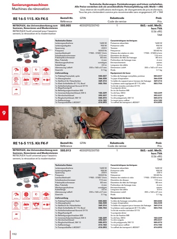 Technische %u00c4nderungen. Preis%u00e4nderungen und Irrtum vorbehalten.Alle Preise verstehen sich als unverbindliche Preisempfehlung exkl. MwSt + vRGSous r%u00e9serve de modifications techniques, de changements de prix et d%u2019erreurs. Tous les prix s%u2018entendent comme prix recommand%u00e9s sans engagement, HT + TAR284Metalloberfl%u00e4chen-BearbeitungTraitement de surface m%u00e9talliqueTechnische DatenLeistungsaufnahme1400 WLeistungsabgabe880 WSpannung230 VFrequenz50/60 HzLeerlaufdrehzahl1%u2018000 %u2013 3%u2018500 1/minMax. Werkzeugdurchmesser125 mmMax. Werkzeugbreite100 mmKabell%u00e4nge4.0 mKabeltyproter SteckerGewicht2.1 kgCaract%u00e9ristiques techniquesPuissance absorb%u00e9e1400 WPuissance utile880 WTension230 VFr%u00e9quence50/60 HzVitesse de rotation %u00e0 vide1%u2018000 %u2013 3%u2018500 tr/minDiam%u00e8tre d%u2018outil max.125 mmLargeur d%u2018outil max.100 mmLongueur de c%u00e2ble4.0 mType de c%u00e2bleFicher rougePoids2.1 kgBME 14-3 LBestell-Nr.R%u00e9f%u00e9renceGTINRabattcodeCode de remisePreisPrixBasismotor TRINOXFLEXMoteur de base TRINOXFLEX433.40340302931871601400.%u2013 exkl. MwSt. hors TVA 0.56 vRGTARTechnische DatenLeistungsaufnahme1400 WLeistungsabgabe880 WSpannung230 VFrequenz50/60 HzB%u00fcrsten-/Walzendurchmesser Max.125 mmB%u00fcrsten-/Walzenbreite Max.100 mmLeerlaufdrehzahl1%u2018000 %u2013 3%u2018500 1/minWerkzeugaufnahme19 mmKabell%u00e4nge4.0 mAbmessung LxBxH320 x 210 x 195 mmGewicht2.9 kgLieferumfang1x Schleifvorsatz Satinieren433.462Caract%u00e9ristiques techniquesPuissance absorb%u00e9e1400 WPuissance utile880 WTension230 VFr%u00e9quence50/60 HzDiam%u00e8tre de brosse125 mmLargeur de brosse100 mmVitesse de rotation %u00e0 vide1%u2018000 %u2013 3%u2018500 tr/minEmmanchement19 mmLongueur de c%u00e2ble4.0 mDimension LxlxH320 x 210 x 195 mmPoids2.9 kgEquipement de base1x adaptateur de pon%u00e7age pour satinage433.462BSE 14-3 100Bestell-Nr.R%u00e9f%u00e9renceGTINRabattcodeCode de remisePreisPrixSatiniermaschine TRINOXFLEXSatineuse TRINOXFLEX433.41140302931871771615.%u2013 exkl. MwSt. hors TVA 0.56 vRGTAR