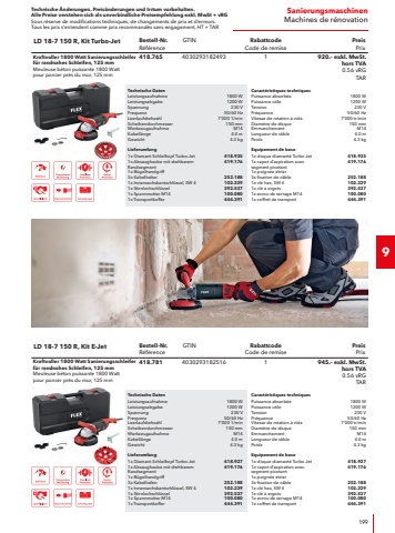 Technische %u00c4nderungen. Preis%u00e4nderungen und Irrtum vorbehalten.Alle Preise verstehen sich als unverbindliche Preisempfehlung exkl. MwSt + vRGSous r%u00e9serve de modifications techniques, de changements de prix et d%u2019erreurs. Tous les prix s%u2018entendent comme prix recommand%u00e9s sans engagement, HT + TAR354Zubeh%u00f6r Metalloberfl%u00e4chen-BearbeitungAccessoires Traitement de surface m%u00e9talliqueFixTec-Schnellspannmutter M14Ecrou de serrage rapide FixTrec M14RabattcodeCode de remise2F%u00fcr werkzeuglosen Scheibenwechsel, geeignet f%u00fcr Scheibendurchmesser 115 %u2013 150 mm.Pour un changement de disque sans outil, adapt%u00e9 aux disques de 115 %u00e0 150 mm de diam%u00e8tre.BezeichnungD%u00e9signationBestell-Nr.R%u00e9f%u00e9renceVEUEPreis PrixFIXTEC-M14313.459155.%u2013Litzendrahtb%u00fcrste StahlBrosse acier %u00e0 fils torsad%u00e9sRabattcodeCode de remise2Zum Bearbeiten, Strukturieren von Holzoberfl%u00e4chen und Ausb%u00fcrsten von Jahresringen in Weichh%u00f6lzern. Entfernt Farbr%u00fcckst%u00e4nde auf Holzoberfl%u00e4chen. Mit 4-Nut Walzenkern, passend f%u00fcr alle Ger%u00e4te mit 19 mm Keilnutspindel (kompatibel f%u00fcr LP 1503 VR).Pour traiter et structurer les surfaces en bois et pour enlever les veines du bois tendres %u00e0 la brosse. %u00c9limine les r%u00e9sidus de peinture sur les surfaces en bois. Avec noyau de rouleau %u00e0 4 rainures, convient pour tous les appareils avec broche cannel%u00e9e de 19 mm (compatible pour LP 1503 VR).BezeichnungD%u00e9signationDurchmesserDiam%u00e8treBestell-Nr.R%u00e9f%u00e9renceVEUEPreis PrixBW-S D100/85100 mm465.1781102.%u2013Litzendrahtb%u00fcrste EdelstahlBrosse inox %u00e0 fils torsad%u00e9sRabattcodeCode de remise2Zum Bearbeiten von Holzoberfl%u00e4chen mit Gerbstoffen wie Eichenh%u00f6lzer und zum Strukturieren, Ausb%u00fcrsten von Jahresringen in Weichh%u00f6lzern. Entfernt Farbr%u00fcckst%u00e4nde auf Holzoberfl%u00e4chen. Ideal auch zum B%u00fcrsten von metallischen Oberfl%u00e4chen. Mit 4-Nut Walzenkern, passend f%u00fcr alle Ger%u00e4te mit 19 mm Keilnutspindel (kompatibel f%u00fcr LP 1503 VR).Pour traiter les surfaces en bois avec des tanins comme les bois de ch%u00eane ainsi que pour structurer et enlever les cernes des bois tendres %u00e0 la brosse. %u00c9limine les r%u00e9sidus de peinture sur les surfaces en bois. Convient aussi parfaitement pour le brossage des surfaces m%u00e9talliques. Avec noyau de rouleau %u00e0 4 rainures, convient pour tous les appareils avec broche cannel%u00e9e de 19 mm (compatible pour LP 1503 VR).BezeichnungD%u00e9signationDurchmesserDiam%u00e8treBestell-Nr.R%u00e9f%u00e9renceVEUEPreis PrixBW-INOX D100/85100 mm465.1511151.%u2013Poli-FilzFeutre %u00e0 polirRabattcodeCode de remise2Weiches, elastisches Filz-Polierrad. Zum Hochglanzpolieren unter Verwendung von Polierpasten und -cremes.Roue %u00e0 polir en feutre souple. Pour un polissage sp%u00e9culaire en utilisant p%u00e2tes et cr%u00e8mes de polissage.BezeichnungD%u00e9signationDurchmesserDiam%u00e8treBestell-Nr.R%u00e9f%u00e9renceVEUEPreis PrixSW-PF 100x50100 mm257.3741108.%u2013BaumwollschwabbelDisque toile en cotonRabattcodeCode de remise2Polierring aus impr%u00e4gniertem Baumwolltuch. Poliert Alu, Kupfer, Messing und VA-St%u00e4hle auf Hochglanz. Ben%u00f6tigt werden 8 St%u00fcck und der Distanzringsatz (Bestell-Nr. 250.522).Tambour %u00e0 polir en coton impr%u00e9gn%u00e9. Polit aluminium, cuivre, laiton et inoxydable avec %u00e9clat. Huit pi%u00e8ces sont n%u00e9cessaires.BezeichnungD%u00e9signationBestell-Nr.R%u00e9f%u00e9renceVEUEPreis PrixBaumwollschwabbel-Scheibe 8er / Disque toile en coton 8er317.950856.%u2013Klebeband f%u00fcr SchleifbandBandes adh%u00e9sives pour bandes abrasivesRabattcodeCode de remise2Zum Schliessen von offenen Schleifb%u00e4ndern. Ben%u00f6tigt wird die Antriebsrolle RA 62x70 INOX 303.054.Pour la fermeture de bandes abrasives ouvertes. Galet d%u2019entra%u00eenement RA 62x70 INOX 303.054 requis.BezeichnungD%u00e9signationBestell-Nr.R%u00e9f%u00e9renceVEUEPreis PrixKlebeband f%u00fcr Schleifband / Bandes adh%u00e9sives pour bandes abrasives251.838119.%u2013