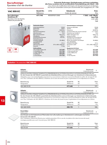 Technische %u00c4nderungen. Preis%u00e4nderungen und Irrtum vorbehalten.Alle Preise verstehen sich als unverbindliche Preisempfehlung exkl. MwSt + vRGSous r%u00e9serve de modifications techniques, de changements de prix et d%u2019erreurs. Tous les prix s%u2018entendent comme prix recommand%u00e9s sans engagement, HT + TAR14WinkelschleiferMeuleses d%u2018angle2Technische DatenLeistungsaufnahme2600 WLeistungsabgabe1800 WSpannung230 VFrequenz50/60 HzMax. Scheibendurchmesser230 mmLeerlaufdrehzahl6%u2018500 1/minWerkzeugaufnahmeM14Kabell%u00e4nge4.0 mAbmessung LxBxH500 x 106 x 145 mmGewicht6.35 kgLieferumfang1x Schutzhaube Schleifen442.8281x SoftVib-Handgriff325.3841x Schnellspannmutter M14530.7261x Innensechskantschl%u00fcssel, SW 6104.1671x Spannflansch335.282Caract%u00e9ristiques techniquesPuissance absorb%u00e9e2600 WPuissance utile1800 WTension230 VFr%u00e9quence50/60 HzDiam%u00e8tre de disque max.230 mmVitesse de rotation %u00e0 vide6%u2018500 tr/minEmmanchementM14Longueur de c%u00e2ble4.0 mDimension LxlxH500 x 106 x 145 mmPoids6.35 kgEquipement de base1x carter de protection du pon%u00e7age442.8281x poign%u00e9e SoftVib325.3841x ecro de serrage rapide530.7261x cl%u00e9 hex, SW 6104.1671x bride de serrage335.282L 26-6 230Bestell-Nr.R%u00e9f%u00e9renceGTINRabattcodeCode de remisePreisPrix2600 Watt Winkelschleifer, 230 mmMeuleuse d%u2018angle 2600 Watt, 230 mm531.04540302932488541375.%u2013 exkl. MwSt. hors TVA 2.31 vRGTARTechnische DatenLeistungsaufnahme2100 WLeistungsabgabe1250 WSpannung230 VFrequenz50/60 HzMax. Scheibendurchmesser230 mmLeerlaufdrehzahl6%u2018500 1/minWerkzeugaufnahmeM14Kabell%u00e4nge4.0 mAbmessung LxBxH490 x 104 x 90 mmGewicht5.4 kgLieferumfang1x Schutzhaube Schleifen338.7291x SoftVib-Handgriff325.3841x Spannflansch335.2821x Spannmutter M14100.0801x Stirnlochschl%u00fcssel, BL 5100.110Caract%u00e9ristiques techniquesPuissance absorb%u00e9e2100 WPuissance utile1250 WTension230 VFr%u00e9quence50/60 HzDiam%u00e8tre de disque max.230 mmVitesse de rotation %u00e0 vide6%u2018500 tr/minEmmanchementM14Longueur de c%u00e2ble4.0 mDimension LxlxH490 x 104 x 90 mmPoids5.4 kgEquipement de base1x carter de protection du pon%u00e7age338.7291x poign%u00e9e SoftVib325.3841x bride de serrage335.2821x ecrou de serrage M14100.0801x cl%u00e9 %u00e0 ergots, BL 5100.110L 21-6 230Bestell-Nr.R%u00e9f%u00e9renceGTINRabattcodeCode de remisePreisPrix2100 Watt Winkelschleifer, 230 mmMeuleuse d%u2018angle 2100 Watt, 230 mm391.51440302931643071250.%u2013 exkl. MwSt. hors TVA 2.31 vRGTAR