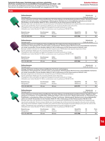 Technische %u00c4nderungen. Preis%u00e4nderungen und Irrtum vorbehalten.Alle Preise verstehen sich als unverbindliche Preisempfehlung exkl. MwSt + vRGSous r%u00e9serve de modifications techniques, de changements de prix et d%u2019erreurs. Tous les prix s%u2018entendent comme prix recommand%u00e9s sans engagement, HT + TAR354Zubeh%u00f6r Metalloberfl%u00e4chen-BearbeitungAccessoires Traitement de surface m%u00e9talliqueFixTec-Schnellspannmutter M14Ecrou de serrage rapide FixTrec M14RabattcodeCode de remise2F%u00fcr werkzeuglosen Scheibenwechsel, geeignet f%u00fcr Scheibendurchmesser 115 %u2013 150 mm.Pour un changement de disque sans outil, adapt%u00e9 aux disques de 115 %u00e0 150 mm de diam%u00e8tre.BezeichnungD%u00e9signationBestell-Nr.R%u00e9f%u00e9renceVEUEPreis PrixFIXTEC-M14313.459155.%u2013Litzendrahtb%u00fcrste StahlBrosse acier %u00e0 fils torsad%u00e9sRabattcodeCode de remise2Zum Bearbeiten, Strukturieren von Holzoberfl%u00e4chen und Ausb%u00fcrsten von Jahresringen in Weichh%u00f6lzern. Entfernt Farbr%u00fcckst%u00e4nde auf Holzoberfl%u00e4chen. Mit 4-Nut Walzenkern, passend f%u00fcr alle Ger%u00e4te mit 19 mm Keilnutspindel (kompatibel f%u00fcr LP 1503 VR).Pour traiter et structurer les surfaces en bois et pour enlever les veines du bois tendres %u00e0 la brosse. %u00c9limine les r%u00e9sidus de peinture sur les surfaces en bois. Avec noyau de rouleau %u00e0 4 rainures, convient pour tous les appareils avec broche cannel%u00e9e de 19 mm (compatible pour LP 1503 VR).BezeichnungD%u00e9signationDurchmesserDiam%u00e8treBestell-Nr.R%u00e9f%u00e9renceVEUEPreis PrixBW-S D100/85100 mm465.1781102.%u2013Litzendrahtb%u00fcrste EdelstahlBrosse inox %u00e0 fils torsad%u00e9sRabattcodeCode de remise2Zum Bearbeiten von Holzoberfl%u00e4chen mit Gerbstoffen wie Eichenh%u00f6lzer und zum Strukturieren, Ausb%u00fcrsten von Jahresringen in Weichh%u00f6lzern. Entfernt Farbr%u00fcckst%u00e4nde auf Holzoberfl%u00e4chen. Ideal auch zum B%u00fcrsten von metallischen Oberfl%u00e4chen. Mit 4-Nut Walzenkern, passend f%u00fcr alle Ger%u00e4te mit 19 mm Keilnutspindel (kompatibel f%u00fcr LP 1503 VR).Pour traiter les surfaces en bois avec des tanins comme les bois de ch%u00eane ainsi que pour structurer et enlever les cernes des bois tendres %u00e0 la brosse. %u00c9limine les r%u00e9sidus de peinture sur les surfaces en bois. Convient aussi parfaitement pour le brossage des surfaces m%u00e9talliques. Avec noyau de rouleau %u00e0 4 rainures, convient pour tous les appareils avec broche cannel%u00e9e de 19 mm (compatible pour LP 1503 VR).BezeichnungD%u00e9signationDurchmesserDiam%u00e8treBestell-Nr.R%u00e9f%u00e9renceVEUEPreis PrixBW-INOX D100/85100 mm465.1511151.%u2013Poli-FilzFeutre %u00e0 polirRabattcodeCode de remise2Weiches, elastisches Filz-Polierrad. Zum Hochglanzpolieren unter Verwendung von Polierpasten und -cremes.Roue %u00e0 polir en feutre souple. Pour un polissage sp%u00e9culaire en utilisant p%u00e2tes et cr%u00e8mes de polissage.BezeichnungD%u00e9signationDurchmesserDiam%u00e8treBestell-Nr.R%u00e9f%u00e9renceVEUEPreis PrixSW-PF 100x50100 mm257.3741108.%u2013BaumwollschwabbelDisque toile en cotonRabattcodeCode de remise2Polierring aus impr%u00e4gniertem Baumwolltuch. Poliert Alu, Kupfer, Messing und VA-St%u00e4hle auf Hochglanz. Ben%u00f6tigt werden 8 St%u00fcck und der Distanzringsatz (Bestell-Nr. 250.522).Tambour %u00e0 polir en coton impr%u00e9gn%u00e9. Polit aluminium, cuivre, laiton et inoxydable avec %u00e9clat. Huit pi%u00e8ces sont n%u00e9cessaires.BezeichnungD%u00e9signationBestell-Nr.R%u00e9f%u00e9renceVEUEPreis PrixBaumwollschwabbel-Scheibe 8er / Disque toile en coton 8er317.950856.%u2013Klebeband f%u00fcr SchleifbandBandes adh%u00e9sives pour bandes abrasivesRabattcodeCode de remise2Zum Schliessen von offenen Schleifb%u00e4ndern. Ben%u00f6tigt wird die Antriebsrolle RA 62x70 INOX 303.054.Pour la fermeture de bandes abrasives ouvertes. Galet d%u2019entra%u00eenement RA 62x70 INOX 303.054 requis.BezeichnungD%u00e9signationBestell-Nr.R%u00e9f%u00e9renceVEUEPreis PrixKlebeband f%u00fcr Schleifband / Bandes adh%u00e9sives pour bandes abrasives251.838119.%u2013