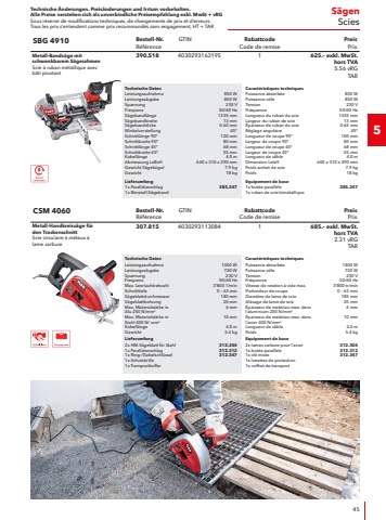 Technische %u00c4nderungen. Preis%u00e4nderungen und Irrtum vorbehalten.Alle Preise verstehen sich als unverbindliche Preisempfehlung exkl. MwSt + vRGSous r%u00e9serve de modifications techniques, de changements de prix et d%u2019erreurs. Tous les prix s%u2018entendent comme prix recommand%u00e9s sans engagement, HT + TAR294Metalloberfl%u00e4chen-BearbeitungTraitement de surface m%u00e9talliqueTechnische DatenLeistungsaufnahme1400 WLeistungsabgabe880 WSpannung230 VFrequenz50/60 HzB%u00fcrsten-/Walzendurchmesser Max.125 mmB%u00fcrsten-/Walzenbreite Max.100 mmLeerlaufdrehzahl1%u2018000 %u2013 3%u2018500 1/minWerkzeugaufnahme19 mmKabell%u00e4nge4.0 mAbmessung LxBxH320 x 210 x 195 mmGewicht2.9 kgLieferumfang1x Schleifvorsatz Satinieren433.4621x Gummiluftwalze433.8961x Luftpumpe256.2841x Schleif-Vlies256.9751x Superfinishing-H%u00fclse436.4291x Superfinishing-H%u00fclse436.4371x Schleifh%u00fclse MESHFLEX434.6123x Schleifh%u00fclse ZIRCOFLEX434.5153x Schleifh%u00fclse ZIRCOFLEX434.5233x Schleifh%u00fclse CORUFLEX434.5741x Koffereinlage433.9181x Transportkoffer L-BOXX%u00ae414.093Caract%u00e9ristiques techniquesPuissance absorb%u00e9e1400 WPuissance utile880 WTension230 VFr%u00e9quence50/60 HzDiam%u00e8tre de brosse125 mmLargeur de brosse100 mmVitesse de rotation %u00e0 vide1%u2018000 %u2013 3%u2018500 tr/minEmmanchement19 mmLongueur de c%u00e2ble4.0 mDimension LxlxH320 x 210 x 195 mmPoids2.9 kgEquipement de base1x adaptateur de pon%u00e7age pour satinage433.4621x cylindre %u00e0 air en caoutchouc433.8961x pompe d%u2018air256.2841x toile abrasive256.9751x manchon abrasif pour polir436.4291x manchon abrasif pour polir436.4371x manchon abrasif MESHFLEX434.6123x manchon abrasif ZIRCOFLEX434.5153x manchon abrasif ZIRCOFLEX434.5233x manchon abrasif CORUFLEX434.5741x insert pour coffret433.9181x coffret de transport L-BOXX%u00ae414.093BSE 14-3 100 SetBestell-Nr.R%u00e9f%u00e9renceGTINRabattcodeCode de remisePreisPrixSatiniermaschine TRINOXFLEX im SetSatineuse TRINOXFLEX en set433.43840302931871841970.%u2013 exkl. MwSt. hors TVA 0.56 vRGTARTechnische DatenLeistungsaufnahme1400 WLeistungsabgabe880 WSpannung230 VFrequenz50/60 HzBandgeschwindigkeit3.5 %u2013 10 m/secLeerlaufdrehzahl1%u2018000 %u2013 3%u2018500 1/minBandl%u00e4nge760 mmBandbreite40 mmGeeignet f%u00fcr max. Rohrdurchmesser125 mmKabell%u00e4nge4.0 mAbmessung LxBxH520 x 160 x 220 mmGewicht3.6 kgLieferumfang1x Schleifvorsatz Rohrband433.4701x Superfinishing-Band326.9171x Superfinishing-Band326.9331x Schleifband MESHFLEX326.8791x Schleifband MESHFLEX326.8525x Schleifband CORUFLEX326.7395x Schleifband CORUFLEX326.7555x Schleifband CORUFLEX434.9141x Koffereinlage433.9181x Transportkoffer L-BOXX%u00ae414.093Caract%u00e9ristiques techniquesPuissance absorb%u00e9e1400 WPuissance utile880 WTension230 VFr%u00e9quence50/60 HzDiam%u00e8tre de brosse125 mmLargeur de brosse100 mmVitesse de rotation %u00e0 vide1%u2018000 %u2013 3%u2018500 tr/minEmmanchement19 mmLongueur de c%u00e2ble4.0 mDimension LxlxH320 x 210 x 195 mmPoids2.9 kgEquipement de base1x adaptateurdepon%u00e7age%u00e0bandepourtubes433.4701x bande de polissage velcro finition326.9171x bande de polissage velcro finition326.9331x bande abrasive MESHFLEX326.8791x bande abrasive MESHFLEX326.8525x bande abrasive CORUFLEX326.7395x bande abrasive CORUFLEX326.7555x bande abrasive CORUFLEX434.9141x insert pour coffret433.9181x coffret de transport L-BOXX%u00ae414.093BRE 14-3 125 SetBestell-Nr.R%u00e9f%u00e9renceGTINRabattcodeCode de remisePreisPrixRohrbandschleifer TRINOXFLEX im SetPonceuse %u00e0 bande pour tubes TRINOXFLEX en set433.446403029318719111%u2018370.%u2013 exkl. MwSt. hors TVA 0.56 vRGTAR