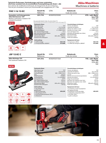 Technische %u00c4nderungen. Preis%u00e4nderungen und Irrtum vorbehalten.Alle Preise verstehen sich als unverbindliche Preisempfehlung exkl. MwSt + vRGSous r%u00e9serve de modifications techniques, de changements de prix et d%u2019erreurs. Tous les prix s%u2018entendent comme prix recommand%u00e9s sans engagement, HT + TAR51Schweizer SpezialistenSp%u00e9cialistes suissesTechnische DatenLeistungsaufnahme400 WLeerlaufdrehzahl2%u2018600 1/minKabell%u00e4nge4.0 mGewicht2.3 kgLieferumfang1x Griffhaube1x Seitlicher Handgriff1x Nylon-Topfb%u00fcrste %u00d8 130 mm K4606.1141x Nylon-Topfb%u00fcrste %u00d8 130 mm K6006.1151x Nylon-Topfb%u00fcrste %u00d8 130 mm K8006.1161x Gabelschl%u00fcssel1x Transportkoffer L-BOXX%u00ae51.143Caract%u00e9ristiques techniquesPuissance absorb%u00e9e400 WattVitesse de rotation %u00e0 vide2%u2018600 tr/minLongueur de c%u00e2ble4.0 mPoids2.3 kgEquipement de base1x couvercle de la poign%u00e9e1x poign%u00e9e lat%u00e9rale1x brosse boisseau %u00d8 130 mm K4606.1141x brosse boisseau %u00d8 130 mm K6006.1151x brosse boisseau %u00d8 130 mm K8006.1161x cl%u00e9 %u00e0 fourche1x coffret de transport L-BOXX%u00ae51.143HBM 1002 SETBestell-Nr.R%u00e9f%u00e9renceGTINRabattcodeCode de remisePreisPrix400 Watt Holzb%u00fcrstmaschineBrosseuse %u00e0 bois 400 Watt50.19740302930160331595.%u2013 exkl. MwSt. hors TVA 0.56 vRGTARTechnische DatenLeistungsaufnahme2000 WVersorgungsspannung230 VFrequenz50 HzHub8%u2018500 Hub/minMesserbreite210 mmGewicht16.0 kgLieferumfang1x Messer 210/60x1.5 mm013.3461x Werkzeugsatz1x Geh%u00f6rschutz1x Schutzhandschuhe1x MesserschutzCaract%u00e9ristiques techniquesPuissance absorb%u00e9e2000 WTension d%u2018alimentation230 VFr%u00e9quence50 HzCourse8%u2018500 Hub/minLargeur de couteau210 mmPoids16.0 kgEquipement de base1x couteau 210/60x1.5 mm013.3461x trousse %u00e0 outils1x protection auditive1x gants de protection1x garde couteauSM 21-6Bestell-Nr.R%u00e9f%u00e9renceGTINRabattcodeCode de remisePreisPrix2000 Watt TeppichstripperD%u00e9colleur de tapis 2000 Watt50.542406078510187911%u2018875.%u2013 exkl. MwSt. hors TVA 2.31 vRGTAR