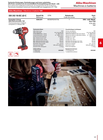 Technische %u00c4nderungen. Preis%u00e4nderungen und Irrtum vorbehalten.Alle Preise verstehen sich als unverbindliche Preisempfehlung exkl. MwSt + vRGSous r%u00e9serve de modifications techniques, de changements de prix et d%u2019erreurs. Tous les prix s%u2018entendent comme prix recommand%u00e9s sans engagement, HT + TAR112WinkelschleiferMeuleses d%u2018angleTechnische DatenLeistungsaufnahme1200 WLeistungsabgabe700 WSpannung230 VFrequenz50/60 HzMax. Scheibendurchmesser125 mmLeerlaufdrehzahl11%u2018500 1/minWerkzeugaufnahmeM14Kabell%u00e4nge4.0 mAbmessung LxBxH300 x 75 x 105 mmGewicht2.0 kgLieferumfang1x Schutzhaube Schleifen436.8601x Spannflansch335.2821x Spannmutter M14100.0801x Stirnlochschl%u00fcssel, BL 5100.1101x Handgriff450.774Caract%u00e9ristiques techniquesPuissance absorb%u00e9e1200 WPuissance utile700 WTension230 VFr%u00e9quence50/60 HzDiam%u00e8tre de disque max.125 mmVitesse de rotation %u00e0 vide11%u2018500 tr/minEmmanchementM14Longueur de c%u00e2ble4.0 mDimension LxlxH300 x 75 x 105 mmPoids2.0 kgEquipement de base1x carter de protection du pon%u00e7age436.8601x bride de serrage335.2821x ecrou de serrage M14100.0801x cl%u00e9 %u00e0 ergots, BL 5100.1101x poign%u00e9e450.774L 12-11 125Bestell-Nr.R%u00e9f%u00e9renceGTINRabattcodeCode de remisePreisPrix1200 Watt Winkelschleifer, 125 mmMeuleuse d%u2018angle 1200 Watt, 125 mm447.67640302931972751175.%u2013 exkl. MwSt. hors TVA 0.56 vRGTARTechnische DatenLeistungsaufnahme1300 WLeistungsabgabe910 WSpannung230 VFrequenz50/60 HzMax. Scheibendurchmesser125 mmLeerlaufdrehzahl10%u2018000 1/minWerkzeugaufnahmeM14Kabell%u00e4nge4.0 mAbmessung LxBxH295 x 75 x 110 mmGewicht2.0 kgLieferumfang1x Schutzhaube Schleifen436.8601x Spannflansch335.2821x Spannmutter M14100.0801x Stirnlochschl%u00fcssel, BL 5100.1101x Handgriff450.774Caract%u00e9ristiques techniquesPuissance absorb%u00e9e1300 WPuissance utile910 WTension230 VFr%u00e9quence50/60 HzDiam%u00e8tre de disque max.125 mmVitesse de rotation %u00e0 vide10%u2018000 tr/minEmmanchementM14Longueur de c%u00e2ble4.0 mDimension LxlxH295 x 75 x 110 mmPoids2.0 kgEquipement de base1x carter de protection du pon%u00e7age436.8601x bride de serrage335.2821x ecrou de serrage M14100.0801x cl%u00e9 %u00e0 ergots, BL 5100.1101x poign%u00e9e450.774L 13-10 125-ECBestell-Nr.R%u00e9f%u00e9renceGTINRabattcodeCode de remisePreisPrix1300 Watt Winkelschleifer mit b%u00fcrstenlosem Motor, 125 mmMeuleuse d%u2018angle 1300 Watt avecmoteur sans balais, 125 mm495.25540302932243911225.%u2013 exkl. MwSt. hors TVA 0.56 vRGTAR