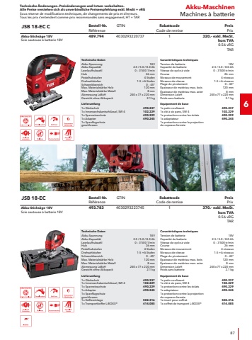 Technische %u00c4nderungen. Preis%u00e4nderungen und Irrtum vorbehalten.Alle Preise verstehen sich als unverbindliche Preisempfehlung exkl. MwSt + vRGSous r%u00e9serve de modifications techniques, de changements de prix et d%u2019erreurs. Tous les prix s%u2018entendent comme prix recommand%u00e9s sans engagement, HT + TAR394Zubeh%u00f6r Metalloberfl%u00e4chen-BearbeitungAccessoires Traitement de surface m%u00e9talliqueSuperfinishing-BandBande de polissage velcro finitionRabattcodeCode de remise2Zum Hochglanzpolieren ohne Poliermittel in zwei Stufen.Pour polir sans produit de polissage en deux %u00e9tapes.BezeichnungD%u00e9signationBandl%u00e4ngeLongueur de bandeBandbreiteLargeur de bandeKornGrainBestell-Nr.R%u00e9f%u00e9renceVEUEPreis Prix760x40 SU-S600760 mm40 mmS 600326.917126.%u2013760x40 SU-S1500760 mm40 mmS 1500326.933126.%u2013Zubeh%u00f6r / Accessoires FBE 8-4 140Schleifarm, 9 mm, spitzBras de pon%u00e7age, 9 mm, en pointeRabattcodeCode de remise2F%u00fcr extrem enge Stellen. Anwendungsf%u00e4lle: Keiln%u00e4hte verschleifen (kleiner Radius), Korrosionsstellen ausschleifen, enge Konturen verschleifen, Kanten entgraten, Treppengel%u00e4nder schleifen, Nut-Zwischenr%u00e4ume bei Nut- und Federbrettern schleifen. Schleifarm verstellbar f%u00fcr Bandl%u00e4ngen 520 mm und 533 mm.Pour utilisation dans des endroits difficiles : Poncer les soudures d%u2018angles (petits rayons), poncer les contours, %u00e9bavurer les ar%u00eates, poncer les balustrades, poncer les espaces entre rainures et coulisseaux. Bras de pon%u00e7age r%u00e9glable pour une longueur de 520 et 533 mm.BezeichnungD%u00e9signationBestell-Nr.R%u00e9f%u00e9renceVEUEPreis PrixSA 9-S256.5251102.%u2013Schleifarm, 9 mm, balligBras de pon%u00e7age, 9 mm, convexeRabattcodeCode de remise2F%u00fcr Winkel und enge Stellen. Anwendungsf%u00e4lle: Keiln%u00e4hte verschleifen (grosser Radius), Kanten entgraten, Treppengel%u00e4nder schleifen, Nut-Zwischenr%u00e4umebei Nut-und Federbrettern schleifen. Schleifarm verstellbar f%u00fcr Bandl%u00e4ngen 520 mm und 533 mm.Pour utilisation dans les angles et les endroits difficiles : Poncer les soudures d%u2018angle (grand rayon), %u00e9bavurer les ar%u00eates, poncer les balustrades, poncer les espaces entre rainures et coulisseaux. Bras de pon%u00e7age r%u00e9glable pour une longueur de 520 et 533 mm.BezeichnungD%u00e9signationBestell-Nr.R%u00e9f%u00e9renceVEUEPreis PrixSA 9-B256.5321102.%u2013Schleifarm, 30 mm, grosse RolleBras de pon%u00e7age, 30 mm, grande poulieRabattcodeCode de remise2F%u00fcr Rohre und Rundungen. Anwendungsf%u00e4lle: Schweissn%u00e4hte an Rohren verschleifen, Radien und %u00dcberg%u00e4nge verschleifen, entgraten. Schleifarm verstellbar f%u00fcr Bandl%u00e4ngen 520 mm und 533 mm.Pour utilisation sur tubes et arrondis : Poncer les soudures sur tubes, poncer rayons et jonctions, %u00e9bavurer. Bras de pon%u00e7age r%u00e9glable pour une longueur de 520 et 533 mm.BezeichnungD%u00e9signationBestell-Nr.R%u00e9f%u00e9renceVEUEPreis PrixSA 30-GR258.8881136.%u2013Polierpaste, Poli whiteP%u00e2te de polissage Poli whiteRabattcodeCode de remise2Vorschleifpaste weiss, Riegel ca. 700 Gramm.P%u00e2te %u00e0 d%u00e9grossir blanche, pain d%u2018env. 700 grammes.BezeichnungD%u00e9signationGewichtPoidsBestell-Nr.R%u00e9f%u00e9renceVEUEPreis PrixPW Inox VS/W0.7 kg255.004113.50Polierpaste Poli blueP%u00e2te de polissage Poli blueRabattcodeCode de remise2Hochglanzpaste blau, Riegel ca. 700 Gramm.P%u00e2te pour polissage brillant, bleue, pain d%u2018env. 700 grammes.BezeichnungD%u00e9signationGewichtPoidsBestell-Nr.R%u00e9f%u00e9renceVEUEPreis PrixPW Inox NS/B0.7 kg255.005117.50