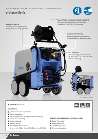 16K 1152 TST | 602022K 1152 TSTD12HOCHDRUCKREINIGER | KALTWASSERKOMFORTABLE SCHLAUCHTROMMEL (TST)platzsparende Aufbewahrung des Hochdruckschlauchs mit Twist-Stop Verdrehschutz ORDNUNGSSYSTEMpraktisches Verstauen von Hochdruckpistole und ReinigungslanzenGROSS DIMENSIONIERTES EDELSTAHLMANOMETER einfaches Ablesen des ArbeitsdrucksROTO-MOLD-CHASSISpraktisch unzerst%u00f6rbares Kunststoff-Geh%u00e4useGEL%u00c4NDEG%u00c4NGIGES FAHRWERKrobustes Fahrgestell f%u00fcr leichten Transport und hohe Standsicherheit%u25ba ZUBEH%u00d6R Seite 26-27AUSSTATTUNGSchnellwechsel-Stecksystem D12%u25a0Kr%u00e4nzle Axialpumpe%u25a0Totalstop-System%u25a0Stufenlose Druckregulierung %u25a0Hochdruckschlauch mit Twist-Stop Verdrehschutz