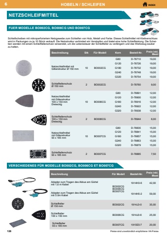 232INDEXPreise sind unverbindlich empfohlene VK-Preise.SCHRAUBENSiehe auch gemischte Bohrer- und Bitsets auf Seite 52Bits:25 mm L%u00e4nge:1x PH1, 2x PH2, 1x PH31x PZ1, 2x PZ21x H3, 1x H4, 1x H5, 1x H61x T10, 1x T15, 2x T20, 2x T251x T27, 1x T30, 1x T4050 mm L%u00e4nge :1x PH2, 1x PZ21x T15,1x T20, 1x T25, 1x T3090 mm L%u00e4nge :1x PH2, 2x PZ21x magnetischer Bithalter 60 mm2x magnetische Steckschl%u00fcssel 8, 10 mmNussadapter 50 mm38-TEILIGES SET MIT BITS MIT 1/4\42-TEILIGES BIT- UND BOHRERSET MIT 1/4\InhaltBestell-Nr.Preis inkl. MwstD-5887749,00Bits:50 mm L%u00e4nge:PH0, PH1, PH2, PH3PZ0, PZ1, 3 x PZ2, PZ3TX10, TX15, TX20, TX25 TX27, TX30, TX40, TX45Schlitz: 0.5x4 - 0.8x5.5 - 1.2x6.5mm Innensechskant: H3, H4, H5, H6100 mm L%u00e4nge:1x PH2 1x PZ2Bohrer mit 6-kant 1/4\HSS: 2.5 - 3.0 - 4.0 - 5.0 - 6.0 mmSteckn%u00fcsse 6-kant 1/4\5, 6, 7, 8, 10, 11, 13Adapter 1/4\Magnetischer BithalterBitmagazin KunststoffBohrer:Metall : 2, 3, 4, 6 mmBITSETS 1/4\InhaltBestell-Nr.Preis inkl. MwstB-5410640,00