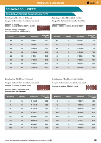 3 43BOHRENINDEXIrrt%u00fcmer und %u00c4nderungen vorbehalten. Abbildungen k%u00f6nnen variieren.Irrt%u00fcmer und %u00c4nderungen vorbehalten. Abbildungen k%u00f6nnen variieren. 04/2025.HOLZBOHRERSPIRALBOHRER MIT RUNDSCHAFTSpiralbohrer mit Zentrierspitze und 2 Schulterschneiden f%u00fcr exakte und splitterfreie Bohrungen in Hart- und Weichholz.Bohrer %u00d8 (mm)Gesamtl%u00e4nge (mm)Bestell-Nr.Preis inkl. Mwst3,060D-070262,004,075D-070322,005,085D-070482,006,095D-070542,007,0110D-070602,008,0115D-070763,009,0125D-070823,00Bohrer %u00d8 (mm)Gesamtl%u00e4nge (mm)Bestell-Nr.Preis inkl. Mwst10,0135D-070983,0012,0155D-071073,0014,0170D-071134,0016,0180D-071294,0018,0200D-071357,0020,0200D-071418,00SPIRALBOHRER MIT RUNDSCHAFT IM 5ER ODER 10ER PACKBohrer %u00d8 (mm)Gesamtl%u00e4nge (mm)MengeBestell-Nr.Preis inkl. Mwst36110D-7172215,0047510D-7173815,0058610D-7174415,0069310D-7175015,00811710D-7176621,00101335D-717729,00FORSTNERBOHRER MIT RUNDEM SCHAFTBohr %u00d8 (mm)Bestell-Nr.Preis inkl. Mwst10D-418449,0015D-4192511,0020D-4223213,0025D-4224814,0026D-42254 15,00Standard Holzbohrkronen, geeignet zum Bohren von Sackl%u00f6chern oder Durchgangsl%u00f6chern von mittlerem Durchmesser. Gesamtl%u00e4nge 90 mm.Bohr %u00d8 (mm)Bestell-Nr.Preis inkl. Mwst30D-4226016,0032D-4227616,0035D-4228217,0040D-4229821,0050D-4230730,00Je 1x : 15 mm / 20 mm / 25 mm / 30 mm / 35 mmInhaltBestell-Nr.Preis inkl. MwstD-4736355,00FORSTNERBOHRER MIT RUNDEM SCHAFT