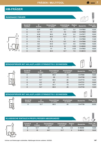 3 51BOHRENINDEXIrrt%u00fcmer und %u00c4nderungen vorbehalten. Abbildungen k%u00f6nnen variieren.Irrt%u00fcmer und %u00c4nderungen vorbehalten. Abbildungen k%u00f6nnen variieren. 04/2025.GEMISCHTE BOHRER SETSBOHRER SETSInhaltMengeGr%u00f6sseBestell-Nr.Preis inkl. MwstMultimaterial-Bohrermit Rundschaft5 Stk4 x 75 mm 5 x 85 mm 6 x 100 mm 8 x 120 mm 10 x 150 mmE-1425520,00Multimaterial-Bohrer 1/4\5 Stk4 x 90 mm 5 x 100 mm 6 x 100 mm 8 x 120 mm 10 x 150 mmE-1673228,00HSS-TiN BohrerSteinbohrerHolzbohrer9 Stk5, 6, 8 mm5, 6, 8 mm5, 6, 8 mmD-7196213,00HSS-TiN BohrerSteinbohrerHolzbohrer9 Stk5.5, 7, 8 mm5.5, 7, 8 mm5.5, 7, 8 mmD-7197815,00HSS-TiN BohrerSteinbohrerHolzbohrer18 Stk4, 5, 6, 7, 8, 10 mm4, 5, 6, 7, 8, 10 mm4, 5, 6, 7, 8, 10 mmD-4620232,00HSS-TiN BohrerSteinbohrerHolzbohrer21 Stk2%u00d73, 2%u00d74, 5, 6, 8 mm2%u00d73, 2%u00d74, 5, 6, 8 mm2%u00d73, 2%u00d74, 5, 6, 8 mmB-4488445,00