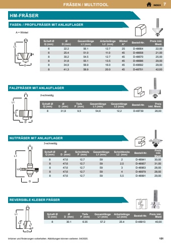 3 55BOHRENINDEXIrrt%u00fcmer und %u00c4nderungen vorbehalten. Abbildungen k%u00f6nnen variieren.Irrt%u00fcmer und %u00c4nderungen vorbehalten. Abbildungen k%u00f6nnen variieren. 04/2025.Informationen zum MAKPAC-Transportsystem sowie passendes Zubeh%u00f6r finden Sie im Kapitel 14 Verschiedenes - Makpac Transportsystem auf Seite 296 !BOHRER- UND BITSETS IM MAKPAC-KOFFERBits:25 mm L%u00e4nge: 2x PH0, 2x PH1, 4x PH2, 2x PH32x PZ0, 2x PZ1, 4x PZ2, 2x PZ3Schlitzbit: 2x4, 2x4,5, 2x5,5, 2x6,5 Sechskant:2x H3, 2x H4, 2x H5, 2x H6Torx:2x TX10, 4x TX15, 4x TX20, 4x TX25, 2x T27, 4x TX30, 2x TX40Torx-TR:2x ST10, 2x ST15, 2x ST20, 2x ST25, 2x ST27, 2x ST30, 2x ST4096-TEILIGES BOHRER- UND BITSET IM MAKPAC-KOFFERInhaltBestell-Nr.Preis inkl. MwstB-49725179,00Bohrer:HSS: 3, 4, 5, 6, 8, 10 mmHolz: 3, 4, 5, 6, 8, 10 mmStein: 3, 4, 5, 6, 8, 10 mmFaustschraubendreherRatschenschraubendreherMassbandMagn. BithalterCuttermesser