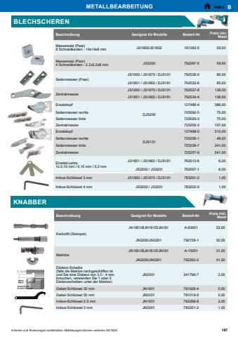 223INDEXIrrt%u00fcmer und %u00c4nderungen vorbehalten. Abbildungen k%u00f6nnen variieren. 04/2025. SCHRAUBENIMPACT PREMIER - VERSCHIEDENESBITHALTER MIT MAGNETBeschreibungL%u00e4nge mmBestell-NrPreis inkl. MwstTorsion magnetisch66E-0339911,00Torsion magnetisch150E-0340814,00Ultra Magmit extra starkem Magnet80E-2027014,00MAGNET MAG BOOST TORSIONBeschreibungL%u00e4nge mmBestell-NrPreis inkl. MwstMag Boost TorsionExtra starker MagnetErleichtert das schnelle Ansetzen der SchraubeMehrzweckgebrauch50E-034426,00STECKSCHL%u00dcSSEL 6-KANT 1/4%u201c MIT MAGNETBeschreibungGr%u00f6sse (SW)L%u00e4nge mmBestell-NrPreis inkl. MwstMit starkem MagnetLeicht zu s%u00e4ubern665E-034586,00865E-034648,001065E-034709,001365E-0348610,00WINKEL-ADAPTER 50 MMBeschreibungBestell-NrPreis inkl. MwstAdapter 1/4%u2033 Sechskantaufnahme > 1/2%u2033 VierkantaufnahmeE-0343612,00Adapter 1/4%u2033 Sechskantaufnahme > 3/8%u2033 VierkantaufnahmeE-0342012,00Der Adapter kann bis zu 15%u00b0 geneigt werden. F%u00fcr Verschraubungen in Ecken und an schwer zug%u00e4nglichen Stellen.GELENK STECKSCHL%u00dcSSEL 6-KANT 17 MM - 80 MMBeschreibungBestell-NrPreis inkl. MwstGelenk Steckschl%u00fcssel 6-Kant 17 mm - 80 mmErlaubt eine Neigung von 15%u00b0 und eignet sich so f%u00fcr Arbeiten auf engstem RaumE-0351715,00