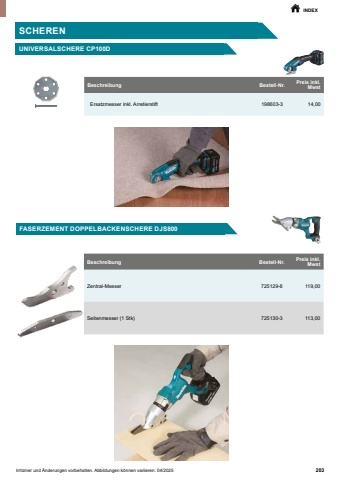 239INDEXIrrt%u00fcmer und %u00c4nderungen vorbehalten. Abbildungen k%u00f6nnen variieren. 04/2025. SCHRAUBENBeschreibungBestell-Nr.Preis inkl. MwstSchultergurt mit mit Anh%u00e4ngerf%u00fcr 14,4 V und 18 V Schrauber mit Li-Ion Akkus197942-822,00Schultergurt f%u00fcr SchlagschrauberModelle DTW700, DTW1001, DTW1002, TW001G, TW007G1913P0-225,00SCHULTERGURTE F%u00dcR SCHRAUBER UND SCHLAGSCHRAUBERBeschreibungBestell-Nr.Preis inkl. MwstWinkelaufsatz C-Form (Mit Lieferfrist, nur auf Bestellung!)135200-4203,00Winkelaufsatz E-Form (Mit Lieferfrist, nur auf Bestellung!)135892-9203,00Gerader Aufsatz E-Form192440-7139,00R%u00e4tschenaufsatz192439-2294,00Adapter 9.5 mm (3/8\134745-935,00Adapter 12.7 mm (1/2\134746-735,00SCHRAUBK%u00d6PFE F%u00dcR AKKU-WINKELSCHLAGSCHRAUBERF%u00dcR DTL060 / DTL061 / TL064D / 6940DWVERSCHIEDENESADAPTER F%u00dcR RATSCHENSCHRAUBER DWR180 UND WR100DBeschreibungBestell-Nr.Preis inkl. MwstAdapter 9.5 mm f%u00fcr Ratschenschrauber191A50-332,00Adapter 6.35 mm f%u00fcr Ratschenschrauber191A51-132,00