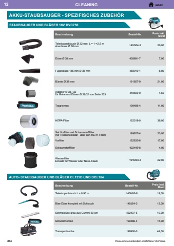 1 12AKKUS / LADEGER%u00c4TEINDEXPreise sind unverbindlich empfohlene VK-Preise.LADEGER%u00c4TE LI-ION14,4 V %u2013 18 V (SERIE LXT)ModellBezeichnungBestell-Nr.Preis inkl. MwstDC18RCSchnellladeger%u00e4t195584-2129,00DC18RDDoppel-Schnellladeger%u00e4t197047-4215,00DC18RECXT&LXT Dual Port Multischnellladeger%u00e4tL%u00e4dt jeweils1 Akku auf%u2018s Mal (LXT oder CXT)198444-7140,00DC18SDStandard Ladeger%u00e4t194533-6108,00DC18SHDoppel-Ladeger%u00e4t Standard199687-4140,00DC18SEAutoladeger%u00e4t(Betriebsspannung 12 V %u2013 24 V)194621-9140,00LADEGER%u00c4TE LI-ION 10.8V / 12VMAX (SERIE CXT)LADEGER%u00c4TE LI-ION7,2 V %u2013 10,8 V STABFORMLADEGER%u00c4TE LI-IONModellBezeichnungBestell-Nr.Preis inkl. MwstDC10SBSchnellladeger%u00e4t197363-475,00DC18RECXT&LXT Dual Port Multischnellladeger%u00e4tL%u00e4dt 1 Akku auf einmal (LXT oder CXT)198444-7140,00ModellBezeichnungBestell-Nr.Preis inkl. MwstDC10WALadeger%u00e4t f%u00fcr Akkus 7,2V und 10,8V Stabform194588-170,00
