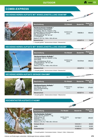 3 43BOHRENINDEXIrrt%u00fcmer und %u00c4nderungen vorbehalten. Abbildungen k%u00f6nnen variieren.Irrt%u00fcmer und %u00c4nderungen vorbehalten. Abbildungen k%u00f6nnen variieren. 04/2025.HOLZBOHRERSPIRALBOHRER MIT RUNDSCHAFTSpiralbohrer mit Zentrierspitze und 2 Schulterschneiden f%u00fcr exakte und splitterfreie Bohrungen in Hart- und Weichholz.Bohrer %u00d8 (mm)Gesamtl%u00e4nge (mm)Bestell-Nr.Preis inkl. Mwst3,060D-070262,004,075D-070322,005,085D-070482,006,095D-070542,007,0110D-070602,008,0115D-070763,009,0125D-070823,00Bohrer %u00d8 (mm)Gesamtl%u00e4nge (mm)Bestell-Nr.Preis inkl. Mwst10,0135D-070983,0012,0155D-071073,0014,0170D-071134,0016,0180D-071294,0018,0200D-071357,0020,0200D-071418,00SPIRALBOHRER MIT RUNDSCHAFT IM 5ER ODER 10ER PACKBohrer %u00d8 (mm)Gesamtl%u00e4nge (mm)MengeBestell-Nr.Preis inkl. Mwst36110D-7172215,0047510D-7173815,0058610D-7174415,0069310D-7175015,00811710D-7176621,00101335D-717729,00FORSTNERBOHRER MIT RUNDEM SCHAFTBohr %u00d8 (mm)Bestell-Nr.Preis inkl. Mwst10D-418449,0015D-4192511,0020D-4223213,0025D-4224814,0026D-42254 15,00Standard Holzbohrkronen, geeignet zum Bohren von Sackl%u00f6chern oder Durchgangsl%u00f6chern von mittlerem Durchmesser. Gesamtl%u00e4nge 90 mm.Bohr %u00d8 (mm)Bestell-Nr.Preis inkl. Mwst30D-4226016,0032D-4227616,0035D-4228217,0040D-4229821,0050D-4230730,00Je 1x : 15 mm / 20 mm / 25 mm / 30 mm / 35 mmInhaltBestell-Nr.Preis inkl. MwstD-4736355,00FORSTNERBOHRER MIT RUNDEM SCHAFT