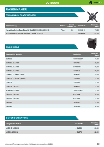 3 53BOHRENINDEXIrrt%u00fcmer und %u00c4nderungen vorbehalten. Abbildungen k%u00f6nnen variieren.Irrt%u00fcmer und %u00c4nderungen vorbehalten. Abbildungen k%u00f6nnen variieren. 04/2025.BOHRER UND BIT SETSFlachfr%u00e4sbohrer : 10, 12, 16, 19, 25 mm (je 1 Stk)10 HSS-R Metallbohrer : 1.5 bis 6 mm, jede 0.5 mm45 Schraub-Eins%u00e4tze 25 mm :2xPH1, 10xPH2, 2xPH32xPZ1, 11xPZ2, 2xPZ32xT10, 2xT15, 4xT20, 4xT25, 4xT3010 Schraub-Eins%u00e4tze 50 mm : 4x PH2, 4x PZ2, 2xT25Magnethalter71-TEILIGES BOHRER- UND BITSETInhaltBestell-Nr.Preis inkl. MwstB-5029562,00Bits:50 mm L%u00e4nge1x PH1, 3x PH2,1x PH31x PZ1,3x PZ2, 1x PZ31x T20, 1x T3025 mm L%u00e4nge2x PH1,3x PH2, 2x PH32x PZ1, 36x PZ2, 2x PZ31x T10, 1x T15, 1x T20, 1x T251x T30, 1x T401x H4, 1x H5, 1x H6, 1x H7Innensechskant: 4, 5, 6, 7Schlitzbit: 1x4, 1x4.51x magnetischer Bithalter3x Steckschl%u00fcssel 6, 8, 10 mmBohrer:Metall: 2, 2x3, 4, 5, 6 mmHolz: 2x3, 4, 2x5, 6, 8 mmBeton: 2x6, 7, 8 mm2x Flachfr%u00e4sbohrer: 12, 16 mm2x Lochs%u00e4gen 32 + 38 mm1x Zentrierbohrer1x Versenker100-TEILIGES BOHRER- UND BITSETInhaltBestell-Nr.Preis inkl. MwstB-5452059,00102-TEILIGES BOHRER- UND BITSETInhaltBestell-Nr.Preis inkl. MwstB-6843265,00Bits:50 mm L%u00e4nge:PH1, PH2,PH3 PZ1, PZ2, PZ3SL4, SL4.5, SL7, SL8,T10, T15, T20, T25, T30, T40 H3, H4, H5, H625 mm L%u00e4nge:PH1, PH2, PH32x PZ1, 3x PZ2 2x PZ3 2x SL3, 2x SL4, 2x SL4.5, 2x SL6, SL7, SL8T10, T15, T20, T25, T27, T30 H3, H4, H5, H6Bits mit Tiefenbegrenzer 2x PH2Bohrer:Metall : 1, 1.5, 2, 2.5, 3, 3.5, 4, 4.5, 5, 5.5, 6, 6.5, 7 mmHolz : 3, 4, 5, 6, 8, 10 mmStein : 3, 4, 5, 5.5, 6, 6.5, 7, 8, 9, 10 mmSteckschl%u00fcssel 6, 7, 8, 9, 10, 11, 12 mm (1/4%u201c, 9/32%u201c, 5/16%u201c, 11/32%u201c, 3/8%u201c, 7/16%u201c, 1/2%u201c) 1x magnetischer Bithalter 60 mm1x Versenker 36 mm3x Tiefenbegrenzer 3, 5, 8 mm mit Imbusschl%u00fcssel