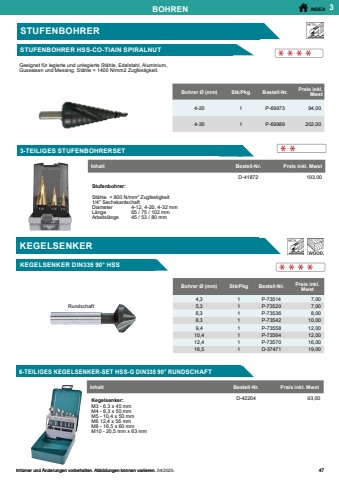 231INDEXIrrt%u00fcmer und %u00c4nderungen vorbehalten. Abbildungen k%u00f6nnen variieren. 04/2025. SCHRAUBENBits 25 mm Sonder-Bits30 Bits in Bit-BoxBits 5/16\Bithalter magnetisch 60 mmSteckschl%u00fcsseleinsatz 1/4\Steckschl%u00fcsseleinsatz 1/2\Steckschl%u00fcsseleinsatz Sechskant von 5 bis 13 mmSteckschl%u00fcsseleinsatz 1/2\Maul-/Ringschl%u00fcssel von 8 bis 19 mmInnensechskant-Schl%u00fcssel-SatzVerl%u00e4ngerung 1/4\Verl%u00e4ngerung 1/2\Z%u00fcndkerzen-Steckschl%u00fcsseleinsatz 1/2\Schraubendreher mit 1/4\Adapter Steckschl%u00fcsseleinsatz 1/4\Adapter 1/2\Schraubf%u00fchrungsh%u00fclse 80mm und 120 mmUmschalt-Ratsche 1/4\Umschalt-Ratsche 1/2\Kardangelenk 1/4\Adapter f%u00fcr Verl%u00e4ngerung 1/2\T-Griff mit Gleitst%u00fcck 1/4\WERKZEUGSETInhaltBestell-Nr.Preis inkl. MwstE-10883308,00WERKZEUGSET 221 ST%u00dcCKMAKPAC-WERKZEUGSET 221 ST%u00dcCK40 Schraubendreherbits mit einer L%u00e4nge von 25 mm (PH1, 4 x PH2, PH3, PZ1, 3 x PZ2, PZ3, SL3, SL4, 2 x SL5, 2 x SL6. 5, T10, T15, 2 x T20, 2 x T25, T27, 2 x T30, T35, T40, T10H, T15H, T20H, T25H, T27H, T30H, T35H, T40H, H3, H4, H5, H6)Magnet-Bithalter 60 mm H%u00fclsen-Bithalter, 9 x 1/4%u201d-Antriebssteckschl%u00fcssel mit %u00f8 5-13 mm 7 x 1/2%u201d-Antriebssteckschl%u00fcssel mit %u00f8 8-19 mm, 3 x 1/2%u201d- Z%u00fcndkerzensteckschl%u00fcssel mit %u00f8 16%u201321 mmSteckschl%u00fcsseladapter 1/4%u201d Sechskant auf 1/4%u201d-Antrieb Steckschl%u00fcsseladapter 3/8%u201d-Antrieb auf 1/2%u201d-Antrieb1/2%u201d-Antrieb Ratschengriff,1/4%u201d- und 3/8%u201d-Antrieb Doppelratschengriff Bit-Adapter 1/4%u201d Sechskant auf 1/4%u201d-Antrieb Antrieb KombizangeRegelbarer Schraubenschl%u00fcssel4 Schraubendreher (PH1, PH2, PZ2, SL6)RatschenschraubendreherVergaserschraubendreher5 Kombischl%u00fcssel 10-17 mm 8 klappbare Inbusschl%u00fcssel 1,5-8 mmInhaltBestell-Nr.Preis inkl. MwstE-11542229,00
