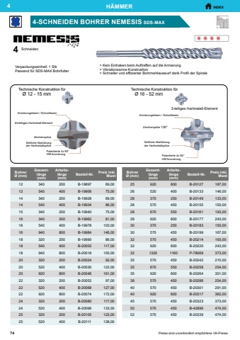 226INDEXPreise sind unverbindlich empfohlene VK-Preise.SCHRAUBENARMIERUNGSEISEN-BINDEHAKENL%u00e4nge (mm)Stk/PkgBestell-Nr.Preis inkl. Mwst1201194731-241,00TIEFENANSCHLAG F%u00dcR SCHRAUBERBeschreibungGeeignet f%u00fcr ModelleBestell-Nr.Preis inkl. MwstTiefenanschlag kurz zu brauchen mit 60 mm Bithalter P-05979FS2300 / FS4300 / FS6300DFS451 / DFS452 / DFS250 DFS251197025-414,00Bithalter magnetisch mit Sicherheitsring60 cm / 1/4\P-0597915,00Bit PH2 standard784211-24,00Beim Eindrehen von der Gewindestange in den Einsatzhalter, bewegen sich die Stifte in dem Halter gegen das Zentrum entlang der Stange und halten sie fest. In dieser Situation ist es einfach die Gewindestange mit Hilfe der H%u00fclse zu schrauben.Gr%u00f6sseStk/PkgBestell-Nr.Preis inkl. MwstM61B-4296128,00M81B-4297729,00M101B-4298330,00VERSCHIEDENES ZUBEH%u00d6REINSATZHALTER F%u00dcR GEWINDESTANGEN