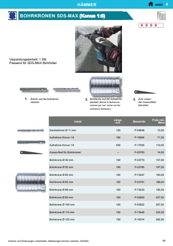 229INDEXIrrt%u00fcmer und %u00c4nderungen vorbehalten. Abbildungen k%u00f6nnen variieren. 04/2025. SCHRAUBEN13-TEILIGES BITSET 25 MMInhaltBestell-Nr.Preis inkl. MwstP-8050355,001x PH1, PH2, PH31x PZ1, PZ2, PZ31x T10, T15, T20, T25, T30, T40Einsatz-Halter Rapid-Fix : P-540751x PH1, PH2, PH31x PZ1, PZ2, PZ31x T15, T20, T25, T30Einsatz-Halter : P-0597911-TEILIGES BITSET 25 MMInhaltBestell-Nr.Preis inkl. MwstP-5405326,00BITSETS1x PH1, 2x PH2,1x PH32 x SQ21x H4, 2x H5, 1x H6 Hexagonal10-TEILIGES BITSET 50 MMInhaltBestell-Nr.Preis inkl. MwstD-6502813,001x PH1, PH2, PH31x PZ1, PZ2, PZ31x T15, 20, 25, 30Magnetischer Einsatz-Halter 11-TEILIGES BITSET 25 MMContenuBestell-Nr.Preis inkl. MwstD-6499515,001x PH0, 1x PH1, 4x PH2, 1x PH31xPZ0, 1x PZ1, 4x PZ2, 1x PZ31x T10, 1x T15, 2x T20, 2x T25, 1x T27, 1x T30, 1x T401x SL4.5, 1x SL5.5, 1x SL6.51x 3, 4, 5, 6 HexagonalMagnetischer Einsatz-Halter31-TEILIGES BITSET 20 MM AKKU-FORMInhaltBestell-Nr.Preis inkl. MwstE-0001632,007-TEILIGES BITSET 25 MMInhaltBestell-Nr.Preis inkl. MwstPH2Q22814,00PZ1, PZ2T15, T20, T25Magnetischer Einsatz-Halter