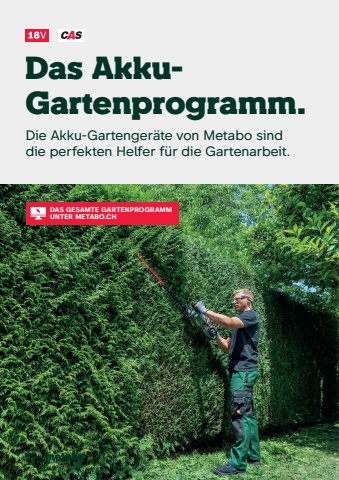 Das AkkuGartenprogramm.Die Akku-Gartenger%u00e4te von Metabo sind die perfekten Helfer f%u00fcr die Gartenarbeit.DAS GESAMTE GARTENPROGRAMM UNTER METABO.CH2