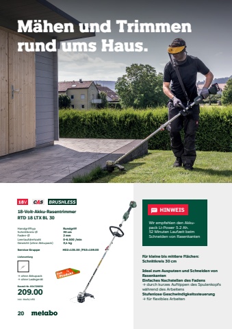 Handlich. Sicher. Vielseitig.%u21922 x 2.0 Ah%u2192Ladeger%u00e4t SC 36%u2192WerkzeugtascheBestell-Nr. 600856500249.00inkl. MwSt/vRG18-Volt-Akku-Geh%u00f6lzs%u00e4geMS 18 LTX 15Max. Kettengeschwindigkeit5 m/sSchnittl%u00e4nge15 cmTreibgliedst%u00e4rke1,1 mmS%u00e4gekette Zahnteilung1/4\Gewicht (ohne Akkupack)1,6 kgService GruppeH01=69.00.00 /FS1=55.00Lieferumfang%u2192metaBOX 215%u2192ohne Akkupack%u2192ohne Ladeger%u00e4tBestell-Nr. 600856840179.00inkl. MwSt/vRG%u2192ohne Akkupack%u2192ohne Ladeger%u00e4tBestell-Nr. 600856850159.00inkl. MwSt/vRG%u2192Ultraleichter Glasfaserstab%u2192Stabile Schiebesitz-Verbindung mit zus%u00e4tzlicher Sicherungsschraube%u2192Gesamtl%u00e4nge variabel von 120 bis 180 cmBestell-Nr. 628714000 95.00inkl. MwStPassendes Zubeh%u00f6rTeleskopstab MS