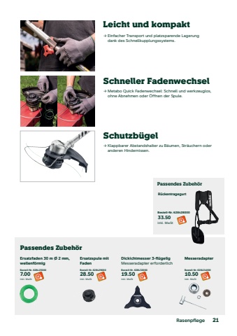 Baum- / StrauchpflegeF%u00fcr den R%u00fcckschnitt von B%u00e4umen undStr%u00e4uchern sowie Gr%u00fcnschnittarbeitenEinfaches Handling mit geringem%u2192Kraftaufwand%u2192Kompakt und leicht%u2192Gummierte Griffbereiche%u2192Konstante Kettengeschwindigkeit von 5 m/s f%u00fcr schnellen Arbeitsfortschritt%u2192Leichtes Wechseln und Spannen der S%u00e4gekette dank SchnellverschlussSicheres Arbeiten%u2192Mit Schutzhaube, Griffschutz und Sicherheitsschalter gegen unbeabsichtigtes Starten%u2192Leichte, sichere Schnitte und geringe Vibrationen durch r%u00fcckschlagarme KetteVielseitig%u2192In Kombination mit Teleskopstab MS (Zubeh%u00f6r) kann die Akku-Geh%u00f6lzs%u00e4ge wie ein Hochentaster zur Baumpflege verwendet werden%u219215 cmBestell-Nr. 628713000 21.00inkl. MwStPassendes Zubeh%u00f6rS%u00e4geschieneS%u00e4gekette%u219215 cmBestell-Nr. 628712000 17.00inkl. MwSt%u21921 lBestell-Nr. 628441000 16.00inkl. MwStBio-S%u00e4gekettenhaft%u00f6lBio-S%u00e4gekettenhaft%u00f6l%u2192100 mlBestell-Nr. 628711000 6.50inkl. MwSt5