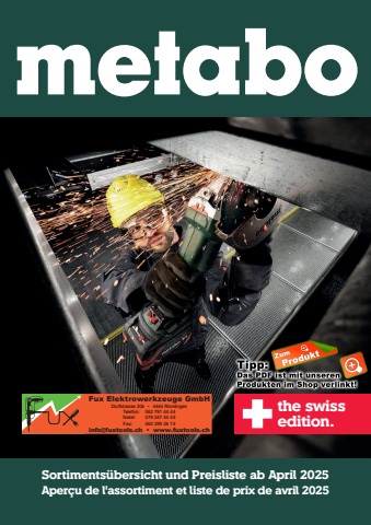Sortiments%u00fcbersicht und Preisliste ab April 2025 Aper%u00e7u de l'assortiment et liste de prix de avril 2025the swissedition.Fux Elektrowerkzeuge GmbHinfo@fuxtools.ch %u2022 www.fuxtools.chDorfstrasse 20b %u20224444 R%u00fcmlingen062 791 44 44079 247 44 44062 299 26 74Telefon:Natel:Fax: