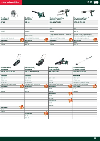 Schlagbohrschrauber /Perceuse %u00e0 percussionSchlagbohrschrauber /Perceuse %u00e0 percussionSchlagbohrschrauber /Perceuse %u00e0 percussionSchlagbohrschrauber /Perceuse %u00e0 percussionSB 18 LT BLSB 18 LTX BL Q ISB18LTX-3BLQIMetal SB18LTX-3BL QILTLTXLTXLTX75 Nm130 Nm / Quick130 Nm / Metall130 Nm / Quick0 - 600 / 0 - 2'100 /min0 - 500 / 0 - 2'000 /min0-450 /min / 0-2'000/min /0-4'000/min0-450 /min / 0-2'000/min /0-4'000/minH02=135.00/FS3=159.00H02=135.00/FS4=215.00H02=135.00/FS4=215.00H02=135.00/FS4=215.006023168906023618506031828506031858500.610.610.610.61215.00315.00395.00345.006023168406023618406031828406031858400.610.610.610.61229.00329.00419.00359.006023616502.33499.006023168002.33379.006023616606031826606031856602.332.332.33549.00699.00579.0019+ the swiss edition.18 V
