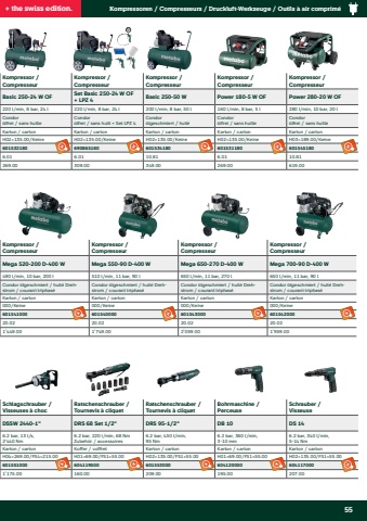 Ladeger%u00e4te / chargeursLadeger%u00e4t /chargeurSchnellladeger%u00e4t /chargeur rapideSchnellladeger%u00e4t /chargeur rapideDoppel-Schnellladeger%u00e4t /doublechargeur rapideSchnellladestation /Station de recharge rapide Akkuspannung / tension batterie 12-36 VASC 55ASC 145ASC 290ASC 145 DUOASC 55 multi 8Karton / cartonNr. / No the swiss edition627044000627378000627376000627495000627093000vRG/TAR0.610.610.610.612.50Preis/Prix55.0085.00159.00155.00699.007+ the swiss edition.metaBOXmetaBOX 118metaBOX 145metaBOX 145 MmetaBOX 63 XS OrganisermetaBOX 118 OrganizerGr%u00f6sse / Dimensions396 x 296 x 118 mm396 x 296 x 145 mm446 x 346 x 145 mm252 x 167 x 63 mm396 x 296 x 118 mmf%u00fcr / pourleer / videleer / videleer / videNr. / No the swiss edition626882000626883000626907000626896000626897000Preis/Prix36.5038.0056.5026.0071.00f%u00fcr / pourBS/SB 12 VBS/SB L/LT18VNr. / No the swiss edition626885000626886000Preis/Prix36.5038.0012 V Schiebesitz / 12 V %u00e0 glissi%u00e9reBatterien / Batteries2.0 Ah Li-Ion4.0 Ah LiHD1 x Batterie / batterieKarton / cartonNr. / No the swiss edition625406000625349000vRG/TAR0.270.86Preis/Prix55.0075.002 x Batterie / batterieASC 30 Karton / cartonNr. / No the swiss edition685300000vRG/TAR1.58Preis/Prix119.002 x Batterie / batterieASC 55 Karton / cartonNr. / No the swiss edition685301000vRG/TAR1.58Preis/Prix169.002x2x1xmetaBOX Rollbrett / metaBOX rouletteWerkzeugtasche / Sacoche %u00e0 outilsmetabBOX Rollbrett / Planche %u00e0 rouletteWerkzeugtasche / Sacoche %u00e0 outils Klein / petiteWerkzeugtasche / Sacoche %u00e0 outils Gross / grandmetaBOX MultiAdapterplatte / Plaque adaptatricemetaBOX Adapterplatte / Plaque adaptatriceTechnische Werte / Valeurs techniquesbis / jusqu'%u00e0 100 kg460 x 260 x 280 mm670 x 290 x 325 mmInfos Seite 60 / page 60Infos Seite 60 / page 60Nr. / No the swiss edition626894000657006000657007000626900000626895000Preis/Prix91.5045.5069.0036.0025.00