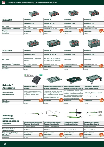 18 V Basisset und Batterien 18 V Set de base et batteries2.0 Ah Li-Ion4.0 Ah Li-Ion5.2 Ah Li-Ion4.0 Ah LiHD5.5 Ah LiHD1 x Batterien / batteriesKarton / cartonNr. / No the swiss edition625026000625027000625028000625367000625368000vRG/TAR0.860.860.860.860.86Preis/Prix59.0089.00109.0099.00119.001 x Batterien / batteriesSC 30 Karton / cartonNr. / No the swiss edition685192000vRG/TAR1.58Preis/Prix109.002 x Batterien / batteriesASC 145 Karton / cartonNr. / No the swiss edition685161000 685050000685051000685163000 685122000(SC30)(ASC 55)(ACS 55)vRG/TAR2.332.332.332.332.33Preis/Prix119.00189.00239.00219.00269.002 x Batterien / batteries1 x 4.0 Ah + 1 x 5.5 Ah,ASC 55 & Karton / cartonNr. / No the swiss edition685160000vRG/TAR2.33Preis/Prix306.003 x Batterien / batteries ASC 145 Karton / cartonNr. / No the swiss edition685132000 685074000(ACS 55)vRG/TAR2.332.33Preis/Prix299.00389.002 x Batterien / batteriesASC 145 & metaBOXNr. / No the swiss editionvRG/TARPreis/Prix2 x Batterien / batteriesASC 290 & metaBOXNr. / No the swiss editionvRG/TARPreis/Prix4 x Batterien / batteries ASC 145 DUO & metaBOXNr. / No the swiss editionvRG/TARPreis/PrixLadeger%u00e4te / chargeursLadeger%u00e4t /chargeurSchnellladeger%u00e4t /chargeur rapideSchnellladeger%u00e4t /chargeur rapideDoppel-Schnellladeger%u00e4t /doublechargeur rapideSchnellladestation /Station de recharge rapide Akkuspannung / tension batterie 12-36 VASC 55ASC 145ASC 290ASC 145 DUOASC 55 multi 8Karton / cartonNr. / No the swiss edition627044000627378000627376000627495000627093000vRG/TAR0.610.610.610.612.50Preis/Prix55.0085.00129.00155.00699.00metaBOX Rollbrett / rouletteTaschen / Sacoche %u00e0 outilsmetabBOX Rollbrett / Planche %u00e0 rouletteWerkzeugtasche / Sacoche %u00e0 outils Klein / petiteWerkzeugtasche / Sacoche %u00e0 outils Gross / grandmetaBOX MultiAdapterplatte / Plaque adaptatrice metaBOX Adapterplatte / Plaque adaptatricebis / jusqu'%u00e0 100 kg460 x 260 x 280 mm670 x 290 x 325 mmInfos - Seite 60 Infos - page 60Infos - Seite 60 Infos - page 60Nr. / No the swiss edition626894000657006000657007000626900000626895000Preis/Prix75.5044.2066.8029.5024.502x2x3x2x2x4x1x1x1218 V
