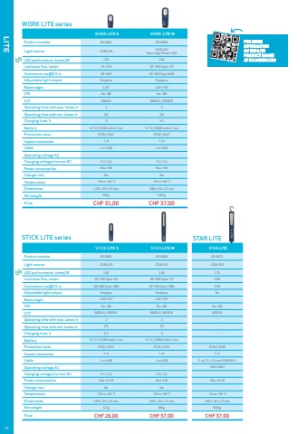 MAG PEN 3 MINI MAG PRO MAG MAG PROProduct number03.511603.569203.540003.5690Light sourceCOB LEDSpot: CREE XP-G2 COB LEDSpot: High power LED 10 SMD LEDsSpot: High power LED COB LEDSpot: High power LEDLED performance, lumen/W180165118185Luminous flux, lumen15-150 Spot: 8020-200 Spot: 80150-300 Spot: 8060-600 Spot: 150Iluminance, lux@0.5 m200 Spot: 200035-350 Spot: 700250-500 Spot: 85090-900 Spot: 2000Adjustable light outputSteplessStepless2 levelsSteplessCRIRa > 80Ra > 80 Ra > 80Ra > 80CCT6000 K6000 K6000 K6000 KOperating time with max. lumen, h 222.51.5Operating time with min. lumen, h2020515Charging time, h3.5344Battery 3.7 V / 750 mAh Li-on 3.7 V / 1200 mAh Li-ion 3.7 V / 2200 mAh Li-ion 3.7 V / 2600 mAh Li-ionProtection classIP20 IP54IP20IP54Impact protectionIK07IK07IK07IK07Impact resistance1 m1 m1 m1 mCable1 m USB 1 m USB 1 m USB 1 m USBOperating voltage ACCharging voltage/current DC5 V / 1 A5 V / 1 A5 V / 1 A5 V / 1 APower consumptionMax 2.5 WMax 2.5 WMax 3.5 WMax 6.5 WCharger incl.NoNoCountry dependedCountry dependedTemperature-10 to +40 %u00b0C-10 to +40 %u00b0C-10 to +40 %u00b0C-10 to +40 %u00b0CDimensions 174 x 31 x 21 mm 200 x 40 x 28 mm 260 x 61 x 43 mm 261 x 62 x 43 mmNet weight 78 g 157 g 252 g339 gPriceCHF 44,00CHF 50,00CHF 61,00CHF 75,00 WORK LIGHTSMAG seriesUNIFORM series UNIPEN MINIFORM UNIFORM SUPERFORM UV-FORMProduct number03.542003.540403.540703.5406CH.A03.5408Light source COB LEDSpot: High power LED COB LEDSpot: High power LED COB LEDSpot: High power LED COB LED COB LED Spot: High power UV-lightLED performance, lumen/W125165150130128Luminous flux, lumen75-150 Spot: 75100-200 Spot: 120250-500 Spot: 175750125-250 Spot: UVIluminance, lux@0.5 m125-250 Spot: 900100-200 Spot: 800475-950 Spot: 60001000200-400 Spot: UVAdjustable light output2 levels2 levels2 levelsNo2 levelsBeam angle110%u00b0CRIRa > 80Ra > 80Ra > 80Ra > 80Ra > 80CCT6000 K6000 K6000 K6000 K6000 KOperating time with max. lumen, h2322.5Operating time with min. lumen, h464.55Charging time, h2.535-3Battery 3.7 V / 750 mAh Li-ion 3.7 V / 1600 mAh Li-ion 3.6 V / 3000 mAh Li-ion 3.7 V / 1600 mAh Li-ionProtection class IP65 IP65IP65 IP54 IP20Impact protectionIK07IK07IK07IK08IK07Impact resistance1 m1 m1 m1 m1 mCable1 m USB1 m USB1 m USB5 m HO5RN-F 2x1 mm21 m USBOperating voltage AC--- 100-240 V-Charging voltage/current DC5 V / 1 A5 V / 1 A5 V / 1 A5 V / 1 APower consumptionMax 1.5 WMax 2.5 WMax 6 WMax 8 WMax 3 WCharger incl.NoCountry dependedCountry dependedCountry dependedTemperature-10 to +40 %u00b0C-10 to +40 %u00b0C-10 to +40 %u00b0C-10 to +40 %u00b0C-10 to +40 %u00b0CDimensions 155 x 27 x 21 mm 122 x 60 x 28 mm 190 x 60 x 32 mm 270 x 49 x 31mm 155 x 60 x 32 mmNet weight 80 g 130 g 263 g710 g 156 gPriceCHF 53,00 CHF 66,00 CHF 104,00 CHF 72,00 CHF 87,00 04