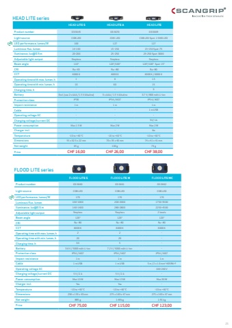 LINE LIGHT C+R LINE LIGHT R LINE LIGHT BONNET C+R NOVA BONNETProduct number03.524303.524403.524003.5457Light source 36 SMD LEDSpot: CREE XP-G2 20 SMD LEDSpot: CREE XP-G2 64 SMD LEDHigh efficiency COB LEDLED performance, lumen/W189189189160Luminous flux, lumen900 Spot: 150600 Spot: 150700-1400200-2000Iluminance, lux@0.5 m1800 Spot: 15001200 Spot: 15001000-2000300-3000Adjustable light outputNoNo2 levels5 levelsBeam angle75%u00b0 Spot: 50%u00b075%u00b0 Spot: 50%u00b075%u00b0-CRIRa > 80Ra > 80Ra > 80Ra > 80CCT6500 K6500 K6500 K6000 KOperating time with max. lumen, h2.5 Spot: 81.5 Spot: 41.52Operating time with min. lumen, h320Charging time, h4645Battery 3.7 V / 5200 mAh Li-ion 3.7 V / 2600 mAh Li-ion 3.7 V / 5200 mAh Li-ion7.3 V / 4000 mAh Li-ionProtection class IP65IP65 IP65IP67Impact protectionIK07IK07IK07IK07Impact resistance1 m1 m1 m1 mCable 5 m / 2 x 1 mm2 HO5RN-F 1 m USB 5 m / 2 x 1.0 mm2 H05RN-F1 m USBOperating voltage AC - -Charging voltage/current DC4.2 V / 3.5 A5 V / 1 A4.2 V / 3.5 A5 V / 2 APower consumptionMax 8 WMax 5.5 WMax 13 WMax 16 WCharger incl.YesCountry dependedYesYesTemperature-10 to +40 %u00b0C-10 to +40 %u00b0C-10 to +40 %u00b0C-10 to +40 %u00b0CDimensions %u00f825 x 461 mm %u00f825 x 357 mm %u00f825 x 1017 mm 1135 x 220 x 163 mmNet weight 300 g 220 g 470 g (980 g incl. rack)1.69 kg (NOVA R 790 g)PriceCHF 121,00CHF 107,00CHF 196,00CHF 173,00LINE LIGHT inspectionBONNET LIGHTSSLIM series MINI SLIM SLIM STARProduct number03.561003.561203.5620Light source COB LEDSpot: High power LED COB LEDSpot: High power LED COB LEDLED performance, lumen/W170155140Luminous flux, lumen 100-200 spot: 100 250-500 spot: 100500-1000Iluminance, lux@0.5 m150-400 spot: 5200 400-800 spot: 4800800-1600Adjustable light output2 levels2 levels2 levelsCRIRa > 80Ra > 80Ra > 80CCT6000 K6000 K6000 KOperating time with max. lumen, h2.52.52.5Operating time with min. lumen, h555Charging time, h34.58Battery 3.7 V/1200 mAh Li-ion 3.6 V/3000 mAh Li-ion 3.7 V/5200 mAh Li-ionProtection classIP30IP30IP65Impact protectionIK07IK07IK07Impact resistance1 m1 m1 mCable 1 m USB 1 m USB1 m USBOperating voltage ACCharging voltage/current DC5 V / 1 A5 V / 1 A5 V / 1 APower consumptionMax 2 WMax 4 WMax 8.5 WCharger incl.Country dependedCountry dependedCountry dependedTemperature-10 to +40 %u00b0C-10 to +40 %u00b0C-10 to +40 %u00b0CDimensions 132 x 41 x 30 mm 165 x 44 x 28 mm 156 x 103 x 98 mmNet weight101 g224 g620 gPriceCHF 73,00CHF 90,00CHF 115,0005