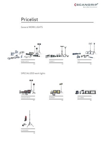 30ACCESSORIESPricelistWORK LIGHTS24COLOUR MATCH26EX PROOF28UV-CURING20LITE04SPECIALIZED work lightsGeneral WORK LIGHTS14CONNECT