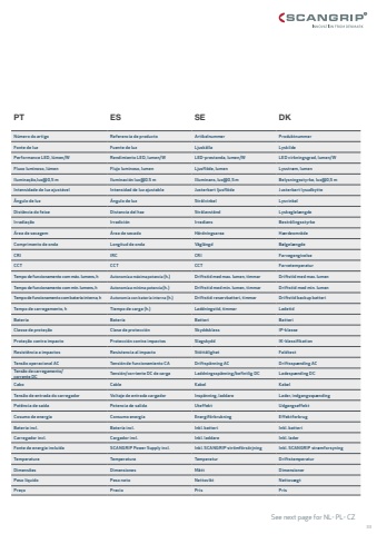 03.5693C 03.5694C03.5695C03.5696C03.5697C03.5698C03.5699CDUO / TOWER CONNECT DUO CONNECT TOWER COMPACT CONNECT TOWER 5 CONNECTProduct number03.6111C03.6110C03.6105CLight source2 x 40 LEDs2 x 40 LEDs120 LEDsLED performance, lumen/W189189189Luminous flux, lumen1250 / 2500 (step 1 / 2) 1250 / 2500 (step 1 / 2) 2500 / 5000 (step 1 / 2) Iluminance, lux@0.5 m900 / 1800 (step 1 / 2)900 / 1800 (step 1 / 2)4000 / 8000 (step 1 / 2)Adjustable light output2 levels2 levels2 levelsBeam angle 180%u00b0 180%u00b0 110%u00b0CRIRa > 80Ra > 80Ra > 80CCT6000 K6000 K6000 KOperating time with max. lumen, h4.5@18 V 5.2 Ah battery4.5@18V 5.2 Ah battery2@18 V 5.2 Ah batteryOperating time with min. lumen, h9.5@18 V 5.2 Ah battery9.5@18V 5.2 Ah battery4.5@18 V 5.2 Ah batteryOperating time: backup battery, h---BatteryCompatible with METABO / CASbattery system 18 V and all other18 V/20 V battery packs by using the SCANGRIP CONNECTORCompatible with METABO / CASbattery system 18 V and all other18 V/20 V battery packs by using the SCANGRIP CONNECTORCompatible with METABO / CASbattery system 18 V and all other18 V/20 V battery packs by using the SCANGRIP CONNECTORProtection classIP30IP30IP30Impact protectionIK07IK07IK07Impact resistance1 m1 m1 mCharger input voltagePower consumptionMax 19.5 WMax 19.5 WMax 45 WBattery incl.NoNoNoCharger incl.NoNoNoPower supply incl.NoNoNoTemperature-10 to +40 %u00b0C-10%u00b0 to +40%u00b0C-10 to +40 %u00b0CDimensions224 x 78 x 91 mm956 x 78 x 91mm121 x 153 x 892 mmNet weight620 g2.74 kg ( incl. stand ) 5.2 kgPrice CHF 96,00CHF 204,00CHF 294,00FOR MORE INFORMATION ON THE MULTILIGHTCONNECT PRODUCT RANGE AT SCANGRIP.COMMULTILIGHT CONNECTNew flexible concept of hand-held work light with multiple, exchangeable light heads17