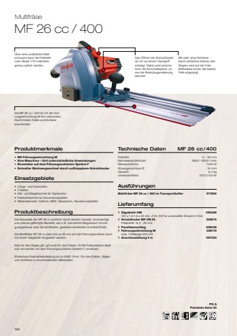 30Akku-Kappschienen-S%u00e4geKSS 50 18M blProduktmerkmale%u2022 Bis 58 mm Schnitttiefe%u2022 Netzunabh%u00e4ngig mit 18 V CAS-LiHD-Technik%u2022 Pr%u00e4zise Winkel- und GehrungsschnitteEinsatzgebiete%u2022 Kappschnitte mit F%u00fchrungseinrichtung%u2022 L%u00e4ngs- und Querschnitte%u2022 Tauch- und Ausschnitte%u2022 Materialeinsatz z. B.: Plattenwerkstoffe, T%u00fcren, Arbeitsplatten, Parkett und Laminat, SchalungenProduktbeschreibungMit ihrem geringen Gewicht und Schnitttiefen von bis zu 52 mm auf der Schiene setzen die neuen, starken Kappschienen-S%u00e4gen von MAFELL deutliche Akzente zum Beispiel beim Innenausbau. Die S%u00e4ge wird nach dem Schnitt automatisch in die Ausgangsposition zur%u00fcckgezogen und bietet bei voller Schnitttiefe eine maximale Schnittl%u00e4ngevon 407 mm.Es ist kein Abschrauben des Spaltkeils mehr n%u00f6tig %u2013 der FLIPPKEIL bietet Ihnen beim Eintauchen optimalen Benutzerkomfort und Anwendersicherheit.Technische Daten KSS 50 18M bl Schnitttiefe mit Schiene bei 0%u00b0 0 %u2013 52 mmSchnitttiefe mit Schiene bei 45%u00b0 0 %u2013 42 mmSchnitttiefe ohne Schiene bei 0%u00b0 0 %u2013 58 mmSchnitttiefe ohne Schiene bei 45%u00b0 0 %u2013 48 mmSchwenkbereich 0 %u2013 45 %u00b0Schnittl%u00e4nge 407 mmWinkelschnitte %u2013 60%u00b0 %u2013 + 60 %u00b0Nennleerlaufdrehzahl 4450 1/minAbsauganschluss %u00d8 35 mmGewicht mit Schiene 5,7 kgAkku 18 V, 99 Wh, LiHDAusf%u00fchrungenAkku-Kappschienen-S%u00e4ge KSS 50 18M bl PURE im Transportkoffer 91B602Akku-Kappschienen-S%u00e4ge KSS 50 18M bl im Transportkoffer 91B601Lieferumfang1 S%u00e4geblatt-HM 092480 168 x 1,2/1,8 x 20 mm, Z 32, WZ,f%u00fcr Feinschnitte in Holz2 Akku-PowerTank 18 M 99 LiHD (nur bei 91B601) 094503 18 V, 99 Wh, LiHD 1 Akku-PowerStation APS M (nur bei 91B601) 0944921 F%u00fchrungseinrichtung M 208170max. Schnittl%u00e4nge 400 mm1 Sechskantschl%u00fcssel 5 mm 0930341 Sp%u00e4nebeutel 206921PG APreisliste Seite 4Flexibel wie noch nie %u2013 die Kappschienen-S%u00e4ge mit neuster 18 V Lithium-Ionen-Technik erm%u00f6glicht professionellen Einsatz fernab jeder Steckdose.Mit einem einzigen Knopfdruck l%u00e4sst sich die Maschine von der Kappschiene l%u00f6sen und mit allen Anwendungsm%u00f6glichkeiten der K 55 cc verwenden.Helle LED-Lichter sorgen f%u00fcr eine gro%u00dffl%u00e4chige Ausleuchtung des Arbeitsbereichs.