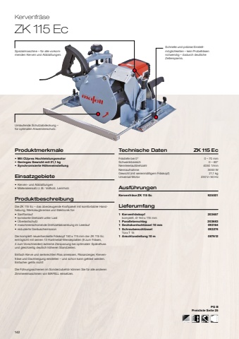 48KSP 40 FlexistemProduktmerkmale%u2022 Mobil mit Flexi-Schiene%u2022 Schattenfugen %u2013 kein Problem ab 13 mm%u2022 Tauchsystem mit FLIPPKEIL%u2022 Komplettsystem im T-MAXEinsatzgebiete%u2022 L%u00e4ngs- und Querschnitte%u2022 Schr%u00e4gschnitte bis 45 %u00b0%u2022 Tauchschnitte%u2022 Schattenfugen ab 13 mm%u2022 Materialeinsatz z. B.: Plattenwerkstoffe, T%u00fcren, Arbeitsplatten, Lattungen, Schalungen, Innenausbau und RenovierungenProduktbeschreibungDas KSP 40 Flexistem ist ein mobiles S%u00e4ge-Komplettsystem mit 40er-Handkreiss%u00e4ge und rollbarer F%u00fchrungsschiene im handlichen Transportkoffer. Die Vorteile f%u00fcr Schreiner, Zimmerer und Innenausbauer liegen auf der Hand:Ganz gleich, ob Sie Platten zuschneiden, Schattenfugen s%u00e4gen oder T%u00fcren abl%u00e4ngen m%u00f6chten %u2013 mit dem KSP 40 Flexistem haben Sie das passende S%u00e4gesystem immer griffbereit. Die ebenso kompakte wie robuste Handkreiss%u00e4ge KSP 40 und die innovative Flexi-Schiene sind die richtige Antwort auf fast 100 % aller Schnitte. Zusammen im praktischen Transportkoffer T-MAX ein unschlagbares Team.Technische Daten KSP 40 Schnitttiefe ohne Schiene 0 %u2013 42 mmSchnitttiefe mit Schiene bei 45%u00b0 0 %u2013 29 mmSchnitttiefe mit Schiene 0 %u2013 40 mmSchwenkbereich 0 %u2013 45%u00b0Flexi-Schiene Nutzl%u00e4nge 1400 mmNennleerlaufdrehzahl 8400 1/minNennaufnahme 900 WGewicht 2,2 kgUniversal-Motor 230 V / 50 Hz Ausf%u00fchrungenKSP 40 Flexistem im T-MAX 915801Lieferumfang1 Flexi-Schiene FX 140 204372 1,4 m mit Spanrei%u00dfschutz1 S%u00e4geblatt-HM 092558 120 x 1,2/1,8 x 20 mm, Z 24, WZ, f%u00fcr universellen Einsatz in Holz1 Parallelanschlag 2031802 Spannpratzen 2037731 Absaugstutzen 2037821 Anschlussleitung 4 m 087323PG APreisliste Seite 7Vier S%u00e4gen in einer %u2013 Handkreiss%u00e4ge, schienengef%u00fchrte Handkreiss%u00e4ge mit Pendelschutzhaube, Tauchs%u00e4ge und Schattenfugens%u00e4ge.Schwenkpunkt an der Gummilippe %u2013 dadurch nur ein Risszeiger, egal welche Winkeleinstellung, mit oder ohne Schiene.Pendelhaubenvoreinzug %u00fcber Hebel bedienbar %u2013 ein Novum in dieser Ger%u00e4teklasse.EumacopInnovationspreis2003