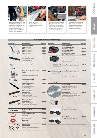 1301159465145125102,572,5165142116,582,51851601319326022018413040032028219942362949,546385549425750,140,5656253615647403427826955,538,5887561,544,519ZSX 400 EcZSX TWINZSX 260 EcMKS 185 EcMKS 130 EcMKS 145 EcKSS 50 18M blKSP 40 FlexistemKSS 300KSS 40 18 M bl MKS 165 EcK 85 Ec / K 85-18KSS 80 Ec / 370MT 55 cc +MT 55 18M blKSS 60 cc + KSS 60 18 M blK 65 cc + K 65 18 M blMAFELLS%u00e4genSchleifenHobelnFr%u00e4senSaugenSpezialBohrenQualit%u00e4ts-S%u00e4gebl%u00e4tter und Schnitttiefen-Angebot.Ein l%u00fcckenloses Schnitttiefenangebot zeichnet das MAFELL-S%u00e4genAngebot aus. Was mit einer leichten Handkreiss%u00e4ge mit 40 mm Schnitttiefe beginnt, reicht bis weit jenseits der 200 mm im Handkreiss%u00e4genbereich und endet erst bei 400 mm Schnitttiefe bei den Handkettens%u00e4gen. Welche Maschine f%u00fcr Sie die Richtige ist, entnehmen Sie aus unserem Schnitttiefen-Diagramm.Schnitttiefen in mmMaximaleSchnitttiefeDamit Leistung voll genutzt werden kann, muss eine Komponente zur Anderen passen. In langen Tests wurden genau die S%u00e4gebl%u00e4tter ermittelt, die allerbeste Arbeitsergebnisse bringen. Auf den nachkommenden Seiten werden die S%u00e4gebl%u00e4tter wie folgt bezeichnet: Qualit%u00e4t (HM = Hartmetall, CV = Chrom-Vanadium-Stahl) Durchmesser x Dicke S%u00e4geblattgrundk%u00f6rper/Schnittbreite x Bohrung, Z%u00e4hnezahl, Zahnart (WZ = Wechselzahn, FZ = Flachzahn, HZ = Hohlzahn, TR = Trapezzahn)