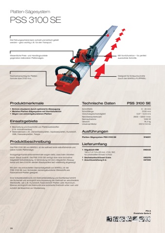 22Akku-Performancestichs%u00e4gePS 2%u201318Produktmerkmale%u2022 Mehr Pr%u00e4zision dank CUnex-S%u00e4geblatt und Schienentauglichkeit%u2022 Werkzeugloser S%u00e4geblattwechsel%u2022 Ergo-Balance-Concept%u2022 Netzunabh%u00e4ngig mit 18 V CAS-LiHD-TechnikEinsatzgebiete%u2022 Gerade Schnitte mit F%u00fchrungsschiene und CUnex%u2022 Gef%u00fchrte Kreisschnitte mit Parallelanschlag P-PA und CUnex%u2022 Ausschnitte%u2022 Schr%u00e4gschnitte bis 45%u00b0%u2022 Materialeinsatz ist s%u00e4geblattabh%u00e4ngig s. Sonderzubeh%u00f6r/WerkzeugeProduktbeschreibungGrenzen sind da, um %u00fcberwunden zu werden. Mit ihrem leistungsstarken Akku-Antrieb geht die Performance-Stichs%u00e4ge PS 2-18 an vollkommen neue Orte und l%u00e4sst in Sachen Pr%u00e4zision, Kraft und Komfort keinen Raum f%u00fcr Kompromisse. Sie bietet alle Vorteile des MAFELL Stichs%u00e4genkonzepts und setzt mit Ergo-Balance und ihrem smarten Lichtmanagement die Messlatte noch mal h%u00f6her. F%u00fcr alle, die h%u00f6chste Anspr%u00fcche an ihre Arbeit stellen. Durch ihr ergonomisches Design, die Softgrip-Oberfl%u00e4chen und die clevere Gewichtsverteilung l%u00e4sst sich die PS 2-18 auch in schwierigen Arbeitspositionen optimal f%u00fchren und liegt perfekt in der Hand. Die breite Grundplatte und der niedrige Schwerpunkt lassen sie sicher und stets rechtwinklig auf dem Werkst%u00fcck aufliegen.Von der innovativen S%u00e4geblattaufnahme bis zu ihrem extrem leistungsstarken Antrieb ist die PS 2-18 auf pr%u00e4zise rechtwinklige Schnitte ausgelegt %u2013 und das in allen Anwendungsbereichen.Mit ihrem vielseitigen Sonderzubeh%u00f6r ist die PS 2-18 f%u00fcr fast jede Situation die optimale L%u00f6sung. Ein klarer Praxisvorteil: Kreisschneider, Parallelanschlag und F%u00fchrungsschienen-Adapter sind in einem einzigen raffinierten Zubeh%u00f6rteil vereint.Technische Daten PS 2-18 Hubh%u00f6he 26 mmLeerlauf-Hubzahl 750 %u2013 3.100 1/minGewicht 2,2 kgGewicht (inkl. Akku) 2,8 kgNennspannung 18 VAusf%u00fchrungenAkku-Performance-Stichs%u00e4ge PS 2-18 im MAX3 91C101Akku-Performance-Stichs%u00e4ge PS 2-18 PURE im MAX3 91C102LieferumfangPURE T-MAX3 Stichs%u00e4gebl%u00e4tter x x CUnex W1; W2; W71 Parallelanschlag P-PA 205448 x x1 Grundplatte P-GP x x1 Absaugstutzen P-AS 203917 x x1 Absaugstutzenverl%u00e4ngerung x x1 Sp%u00e4neabweiser P-SA 204353 x x5 Spanrei%u00dfschutz P-SS 205447 x x1 Gleiter P-G 205464 x x2 Akku-PowerTank 18 M 72 LiHD 094500 x1 Akku-PowerStation APS M 094492 xPG APreisliste Seite 4Das S%u00e4geblatt l%u00e4sst sich kinderleicht wechseln. Einfach den ergonomisch platzierten Spannhebel l%u00f6sen und das S%u00e4geblatt bequem entnehmen oder fixieren.Auch ohne Staubsauger werden Sp%u00e4ne, durch den in der Grundplatte integrierten Absaugkanal, sauber und direkt am S%u00e4geblatt abgef%u00fchrt.Die PS 2-18 wurde so konstruiert, dass die bestm%u00f6gliche Sicht auf das S%u00e4geblatt gew%u00e4hrleistet ist.Zwei hochwertige LEDs sorgenf%u00fcr beste Sicht aufs Werkst%u00fcck.