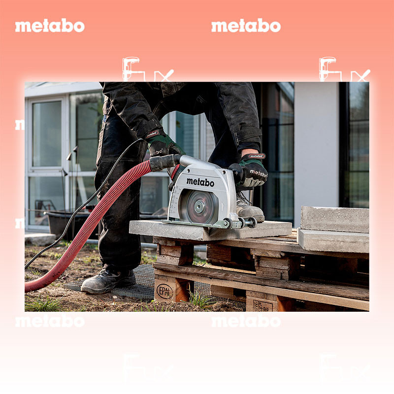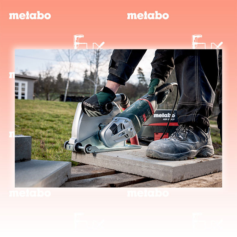 Zu "Diamant-Trennsystem" von Metabo Metabo TE 24-230 MVT CED Diamant-Trennsystem Bestell- und Artikelnummer: 600434500 Leistungsstarker Diamant-Trennschleifer für staubarme Trockenschnitte bis 60 mm in mineralischen Materialien Beste Sicht auf die Schnittlinie dank des offenen Designs der Absaughaube Effiziente Staubabsaugung für Gesundheitsschutz und sauberere Baustellen Schneller Arbeitsfortschritt und lange Lebensdauer durch leistungsstarken Metabo Marathon-Motor Ideal zum exakten, waagrechten Trennen durch schiebenden Schnitt; Umbau auf ziehenden Schnitt möglich Präzise Schnitte auf ebenen Flächen dank Metallgrundplatte mit Rollen Sicherheit und Kontrolle in jeder Situation: Sanftanlauf, Metabo VibraTech (MVT) Vibrationsdämpfung, elektronische Sicherheitsabschaltung und Wiederanlaufschutz Robuste Absaughaube aus Aluminiumdruckguss mit werkzeugloser Einstellung der Schnitttiefe Abschaltkohlebürsten zum Schutz des Motors Anschluss für die Staubabsaugung Ø 35/41 mm Technische Daten Trennscheiben-Ø 230 mm Max. Schnitttiefe 60 mm Nennaufnahmeleistung 2400 W Abgabeleistung 1600 W Leerlaufdrehzahl 6600 /min Spindelgewinde M 14 Gewicht ohne Netzkabel 8.1 kg Kabellänge 4 m Standard-Ausrüstung Absaughaube CED 230 Stützflansch Distanzringe Zweilochmutter Zusatzhandgriff Kunststoffkoffer Diamant-Trennscheibe UP Zweilochschlüssel Geliefert im Koffer Zubehör Verbrauchsmaterial Listenpreis CHF 699.00 Fuxpreis CHF 594.00 inkl. 8.1% MwSt, inkl vRG Frankolieferung Kein Grauimport! Produkt bestellen 1 Stück 2 Stück 3 Stück 4 Stück 5 Stück 6 Stück 7 Stück 8 Stück 9 Stück 10 Stück Option: Bestellen Sie das Produkt zum Listenpreis, und erhalten dafür 36 Monate Fux ALL-IN-ServiceInfos Alle Angaben ohne Gewähr und solange Vorrat reicht!Wiederverkäufer werden?Lehrlingsrabatt? Produkt als PDF 360° Ansicht AKTION 15%