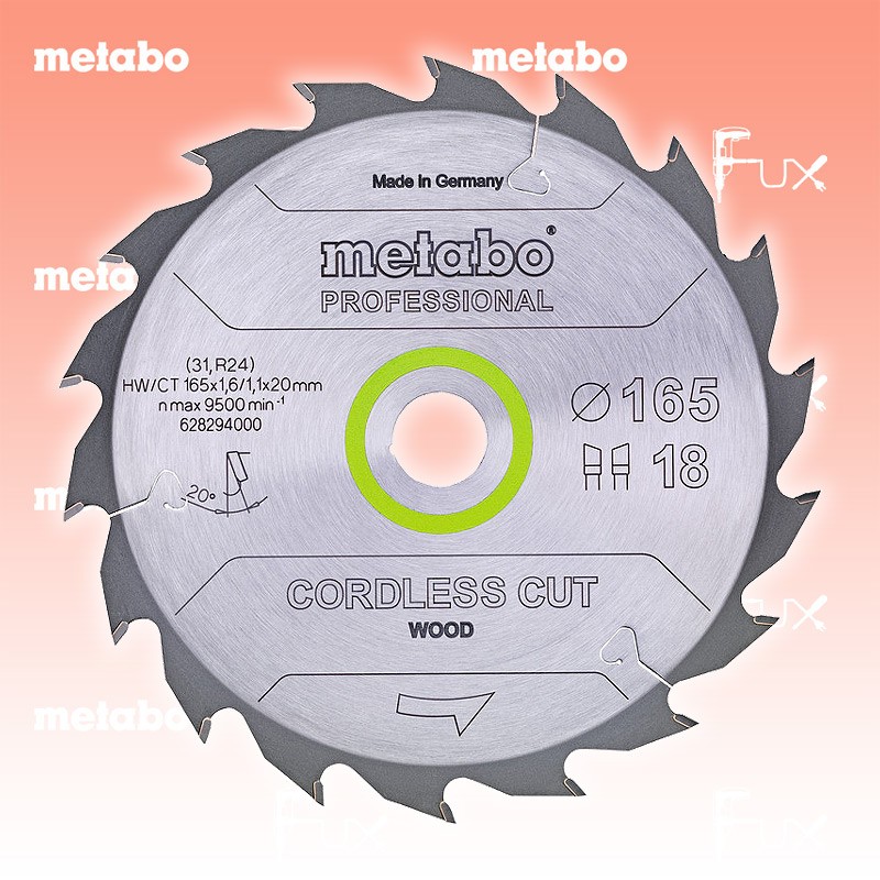 Zu " Kreissägeblätter »cordless cut« wood" von Metabo Metabo Kreissägeblatt 165 mm professional Bestell- und Artikelnummer: 628295000 Maximale Laufzeit für Akku-Sägen durch extra dünne Stammblattdicke und Schnittbreite Deutlich mehr Schnitte pro Akkuladung im Vergleich zu Standard-Sägeblättern bei gleich hoher Standzeit Besonders hohe Standzeit durch beste Hartmetallqualität und feingeschliffene Zähne Präzise, geräuscharme und vibrationsminimierte Schnitte durch gelaserte Dehnschlitze (und teilweise Laserornamente), sowie gelaserte Stammblätter aus hochwertigstem Stahl Zum Kreissägeblatt-Finder Technische Daten Durchmesser x Schnittbreite x Bohrung 165 x 1.6 x 20 mm Material HW/CT Zähnezahl 36 Zahnform WZ Stammblattdicke 1.1 mm Spanwinkel 15° geeignet für KS 18 LTX 57 Verpackung Karton Standard-Ausrüstung Verkaufseinheit 1 Stk. Geliefert im Karton Listenpreis CHF 80.00 Fuxpreis CHF 68.00 inkl. 8.1% MwSt, inkl vRG Versand CHF 15.00 Kein Grauimport! Produkt bestellen Verkaufseinheit 1 Stk. 1 Stück 2 Stück 3 Stück 4 Stück 5 Stück 6 Stück 7 Stück 8 Stück 9 Stück 10 Stück 11 Stück 12 Stück 13 Stück 14 Stück 15 Stück 16 Stück 17 Stück 18 Stück 19 Stück 20 Stück 21 Stück 22 Stück 23 Stück 24 Stück 25 Stück 26 Stück 27 Stück 28 Stück 29 Stück 30 Stück 31 Stück 32 Stück 33 Stück 34 Stück 35 Stück 36 Stück 37 Stück 38 Stück 39 Stück 40 Stück 41 Stück 42 Stück 43 Stück 44 Stück 45 Stück 46 Stück 47 Stück 48 Stück 49 Stück 50 Stück Alle Angaben ohne Gewähr und solange Vorrat reicht!Wiederverkäufer werden?Lehrlingsrabatt? Produkt als PDF AKTION 15%