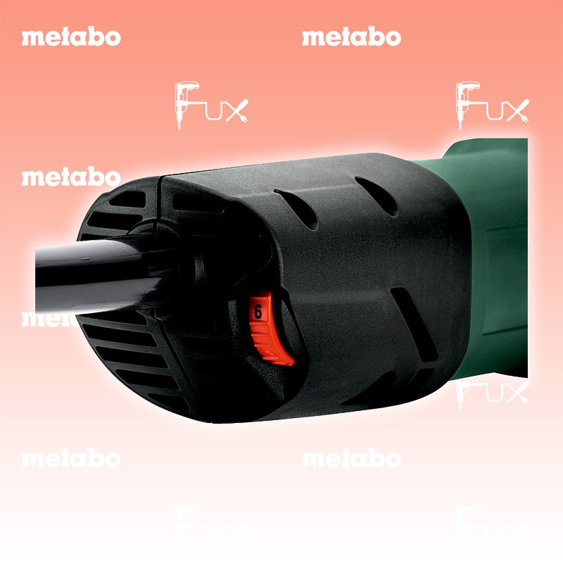Zu "Einhand - Winkelschleifer " von Metabo Metabo WEV 850-125 Winkelschleifer Bestell- und Artikelnummer: 603611520 Robust, universell und wirtschaftlich: kraftvoller Winkelschleifer für jeden Einsatz Kraftvoller Motor mit guter Überlastfähigkeit Vario-Constamatic (VC)-Vollwellenelektronik mit Stellrad: zum Arbeiten mit materialgerechten Drehzahlen, die unter Last nahezu konstant bleiben Verdrehsichere Schutzhaube Elektronischer Überlastschutz, Sanftanlauf und Wiederanlaufschutz Abschaltkohlebürsten zum Schutz des Motors Technische Daten Schleifscheiben Ø125 mm Nennaufnahmeleistung 850 W Abgabeleistung 480 W Leerlaufdrehzahl 3000 - 11500 /min Drehzahl bei Nennlast 8500 /min Drehmoment 2 Nm Spindelgewinde M 14 Gewicht ohne Netzkabel 1.9 kg Kabellänge 2.5 m Standard-Ausrüstung Schutzhaube Zusatzhandgriff Zweilochschlüssel Kunststoffkoffer Stützflansch Zweilochmutter Geliefert im Koffer Zubehör Verbrauchsmaterial Listenpreis CHF 129.00 Fuxpreis CHF 110.00 inkl. 8.1% MwSt, inkl vRG Frankolieferung Kein Grauimport! Produkt bestellen 1 Stück 2 Stück 3 Stück 4 Stück 5 Stück 6 Stück 7 Stück 8 Stück 9 Stück 10 Stück Option: Bestellen Sie das Produkt zum Listenpreis, und erhalten dafür 36 Monate Fux ALL-IN-ServiceInfos Alle Angaben ohne Gewähr und solange Vorrat reicht!Wiederverkäufer werden?Lehrlingsrabatt? Produkt als PDF AKTION 15%