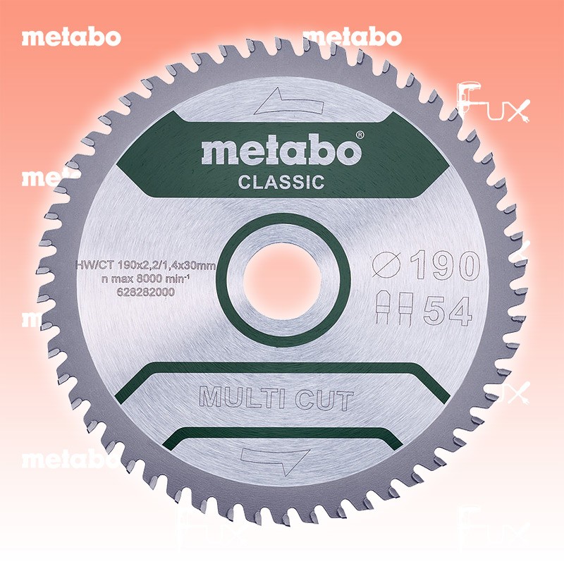Zu "Kreissägeblätter »multi cut«" von Metabo Metabo Kreissägeblatt 190 mm classic Bestell- und Artikelnummer: 628663000 Universeller Einsatz bei anspruchsvollen Materialien Bei hohen Ansprüchen an die Schnittqualität, z.B. Laminat, dünnwandige Kunststoff-, Alu-, Kupfer-, Messingprofile Geeignet für viele Anwendungen im Innenausbau Gute Schnittergebnisse auch bei Querschnitten in Vollholz, rohen, beschichteten oder furnierten Spanplatten, MDF Sehr hohe Leistungskraft der Kreissäge notwendig Zum Kreissägeblatt-Finder Technische Daten Durchmesser x Schnittbreite x Bohrung 190 x 2.2 x 30 mm Material HW/CT Zähnezahl 54 Zahnform FZ/TZ Stammblattdicke 1.4 mm Spanwinkel 5° geeignet für KS 66 / KS 66 Plus / KSE 68 Plus Verpackung Blister Standard-Ausrüstung Verkaufseinheit 1 Stk. Geliefert im Blister Listenpreis CHF 55.00 Fuxpreis CHF 47.00 inkl. 8.1% MwSt, inkl vRG Versand CHF 15.00 Kein Grauimport! Produkt bestellen Verkaufseinheit 1 Stk. 1 Stück 2 Stück 3 Stück 4 Stück 5 Stück 6 Stück 7 Stück 8 Stück 9 Stück 10 Stück 11 Stück 12 Stück 13 Stück 14 Stück 15 Stück 16 Stück 17 Stück 18 Stück 19 Stück 20 Stück 21 Stück 22 Stück 23 Stück 24 Stück 25 Stück 26 Stück 27 Stück 28 Stück 29 Stück 30 Stück 31 Stück 32 Stück 33 Stück 34 Stück 35 Stück 36 Stück 37 Stück 38 Stück 39 Stück 40 Stück 41 Stück 42 Stück 43 Stück 44 Stück 45 Stück 46 Stück 47 Stück 48 Stück 49 Stück 50 Stück Alle Angaben ohne Gewähr und solange Vorrat reicht!Wiederverkäufer werden?Lehrlingsrabatt? Produkt als PDF AKTION 15%