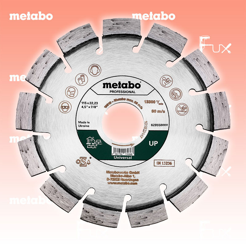 Zu "Qualitätsklasse »professional« / UP Universal " von Metabo Metabo Diamanttrennscheibe 115 mm Bestell- und Artikelnummer: 628558000 Bestens geeignet für alle allgemeinen Bau-/ und Baustellenmaterialien, wie Beton, Waschbeton, harte/ weiche Sandsteine, Tonziegel Die Universalscheibe mit der hochwertigen Diamantqualität und hochwertigen Rohstoffen für optimale Schnittleistung und hohe Standzeit Spezielle Kurzzahnsegmente für hohe Schnittfreudigkeit und saubere Schnittkanten Laserverschweißte Diamantsegmente; Segmenthöhe: 9 mm Technische Daten Durchmesser x Bohrung 115 x 22.23 mm Segmentabmessungen 20 x 2.4 x 9 mm Segmentanzahl 13 Max. Drehzahl 13300 /min Standard-Ausrüstung Verkaufseinheit 1 Stk. Listenpreis CHF 32.50 Fuxpreis CHF 28.00 inkl. 8.1% MwSt, inkl vRG Versand CHF 15.00 Kein Grauimport! Produkt bestellen Verkaufseinheit 1 Stk. 1 Stück 2 Stück 3 Stück 4 Stück 5 Stück 6 Stück 7 Stück 8 Stück 9 Stück 10 Stück 11 Stück 12 Stück 13 Stück 14 Stück 15 Stück 16 Stück 17 Stück 18 Stück 19 Stück 20 Stück 21 Stück 22 Stück 23 Stück 24 Stück 25 Stück 26 Stück 27 Stück 28 Stück 29 Stück 30 Stück 31 Stück 32 Stück 33 Stück 34 Stück 35 Stück 36 Stück 37 Stück 38 Stück 39 Stück 40 Stück 41 Stück 42 Stück 43 Stück 44 Stück 45 Stück 46 Stück 47 Stück 48 Stück 49 Stück 50 Stück Alle Angaben ohne Gewähr und solange Vorrat reicht!Wiederverkäufer werden?Lehrlingsrabatt? Produkt als PDF AKTION 15%