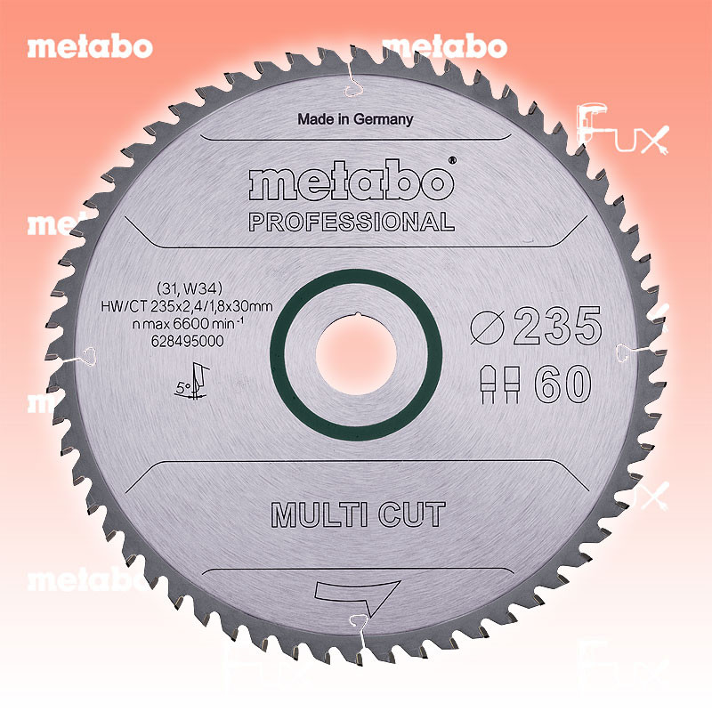 Zu "Kreissägeblätter »multi cut«" von Metabo Metabo Kreissägeblatt 235 mm professional Bestell- und Artikelnummer: 628495000 Universeller Einsatz bei anspruchsvollen Materialien Bei höchsten Ansprüchen an die Schnittqualität, z.B. Laminat, dünnwandige Kunststoff-, Alu-, Kupfer-, Messingprofile Ideal geeignet für viele Anwendungen im Innenausbau Perfekte Schnittergebnisse auch bei Querschnitten in Vollholz, rohen, beschichteten oder furnierten Spanplatten, MDF Sehr hohe Leistungskraft der Kreissäge notwendig Besonders hohe Standzeit durch beste Hartmetallqualität und feingeschliffene Zähne Präzise, geräuscharme und vibrationsminimierte Schnitte durch gelaserte Dehnschlitze (und teilweise Laserornamente), sowie gelaserte Stammblätter aus hochwertigstem Stahl Zum Kreissägeblatt-Finder Technische Daten Durchmesser x Schnittbreite x Bohrung 235 x 2.4 x 30 mm Material HW/CT Zähnezahl 60 Zahnform FZ/TZ Stammblattdicke 1.8 mm Spanwinkel 5° Verpackung Karton Standard-Ausrüstung Verkaufseinheit 1 Stk. Geliefert im Karton Listenpreis CHF 124.00 Fuxpreis CHF 105.00 inkl. 8.1% MwSt, inkl vRG Frankolieferung Kein Grauimport! Produkt bestellen Verkaufseinheit 1 Stk. 1 Stück 2 Stück 3 Stück 4 Stück 5 Stück 6 Stück 7 Stück 8 Stück 9 Stück 10 Stück 11 Stück 12 Stück 13 Stück 14 Stück 15 Stück 16 Stück 17 Stück 18 Stück 19 Stück 20 Stück 21 Stück 22 Stück 23 Stück 24 Stück 25 Stück 26 Stück 27 Stück 28 Stück 29 Stück 30 Stück 31 Stück 32 Stück 33 Stück 34 Stück 35 Stück 36 Stück 37 Stück 38 Stück 39 Stück 40 Stück 41 Stück 42 Stück 43 Stück 44 Stück 45 Stück 46 Stück 47 Stück 48 Stück 49 Stück 50 Stück Alle Angaben ohne Gewähr und solange Vorrat reicht!Wiederverkäufer werden?Lehrlingsrabatt? Produkt als PDF AKTION 15%