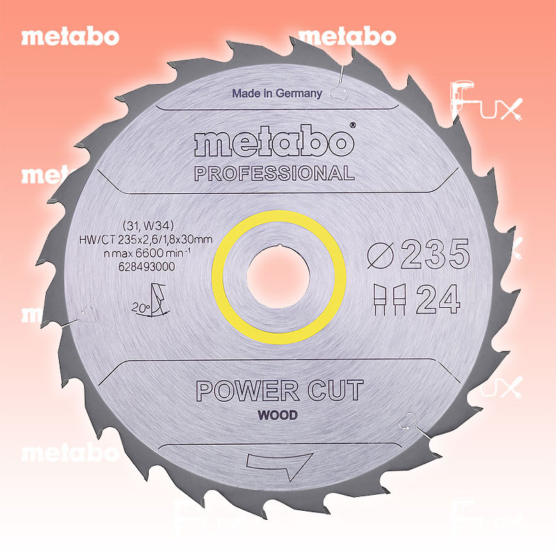 Zu "Kreissägeblätter »power cut« wood" von Metabo Metabo Kreissägeblatt 235 mm professional Bestell- und Artikelnummer: 628493000 Für grobe und mittelfeine Zuschnitte bei zügigem Vorschub und geringem Leistungsbedarf Gute Schnittergebnisse bei Längsschnitten in Vollholz Zum Teil einsetzbar für Bauholz mit Nägeln und Betonresten Besonders hohe Standzeit durch beste Hartmetallqualität und feingeschliffene Zähne Präzise, geräuscharme und vibrationsminimierte Schnitte durch gelaserte Dehnschlitze (und teilweise Zum Kreissägeblatt-Finder Technische Daten Durchmesser x Schnittbreite x Bohrung 235 x 2.6 x 30 mm Material HW/CT Zähnezahl 24 Zahnform WZ Stammblattdicke 1.8 mm Spanwinkel 20° Verpackung Karton Standard-Ausrüstung Verkaufseinheit 1 Stk. Geliefert im Karton Listenpreis CHF 86.00 Fuxpreis CHF 73.00 inkl. 8.1% MwSt, inkl vRG Versand CHF 15.00 Kein Grauimport! Produkt bestellen Verkaufseinheit 1 Stk. 1 Stück 2 Stück 3 Stück 4 Stück 5 Stück 6 Stück 7 Stück 8 Stück 9 Stück 10 Stück 11 Stück 12 Stück 13 Stück 14 Stück 15 Stück 16 Stück 17 Stück 18 Stück 19 Stück 20 Stück 21 Stück 22 Stück 23 Stück 24 Stück 25 Stück 26 Stück 27 Stück 28 Stück 29 Stück 30 Stück 31 Stück 32 Stück 33 Stück 34 Stück 35 Stück 36 Stück 37 Stück 38 Stück 39 Stück 40 Stück 41 Stück 42 Stück 43 Stück 44 Stück 45 Stück 46 Stück 47 Stück 48 Stück 49 Stück 50 Stück Alle Angaben ohne Gewähr und solange Vorrat reicht!Wiederverkäufer werden?Lehrlingsrabatt? Produkt als PDF AKTION 15%