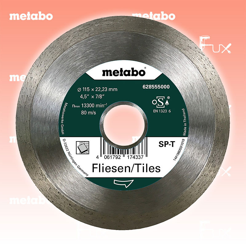Zu "Qualitätsklasse »classic« / TC" von Metabo Metabo Diamanttrennscheibe 115 mm Bestell- und Artikelnummer: 628555000 Spezielle Scheibe für alle Arten von Fliesen, glasiert und unglasiert, Natursteinplatten Gute Schnittleistung und optimale Standzeit; Gesinterter Schneidrand; Segmenthöhe: 7 mm Technische Daten Durchmesser x Bohrung 115 x 22.23 mm Segmentabmessungen 1,5 x 7 mm Max. Drehzahl 13300 /min Standard-Ausrüstung Verkaufseinheit 1 Stk. Listenpreis CHF 12.00 Fuxpreis CHF 10.20 inkl. 8.1% MwSt, inkl vRG Versand CHF 15.00 Kein Grauimport! Produkt bestellen Verkaufseinheit 1 Stk. 1 Stück 2 Stück 3 Stück 4 Stück 5 Stück 6 Stück 7 Stück 8 Stück 9 Stück 10 Stück 11 Stück 12 Stück 13 Stück 14 Stück 15 Stück 16 Stück 17 Stück 18 Stück 19 Stück 20 Stück 21 Stück 22 Stück 23 Stück 24 Stück 25 Stück 26 Stück 27 Stück 28 Stück 29 Stück 30 Stück 31 Stück 32 Stück 33 Stück 34 Stück 35 Stück 36 Stück 37 Stück 38 Stück 39 Stück 40 Stück 41 Stück 42 Stück 43 Stück 44 Stück 45 Stück 46 Stück 47 Stück 48 Stück 49 Stück 50 Stück Alle Angaben ohne Gewähr und solange Vorrat reicht!Wiederverkäufer werden?Lehrlingsrabatt? Produkt als PDF AKTION 15%