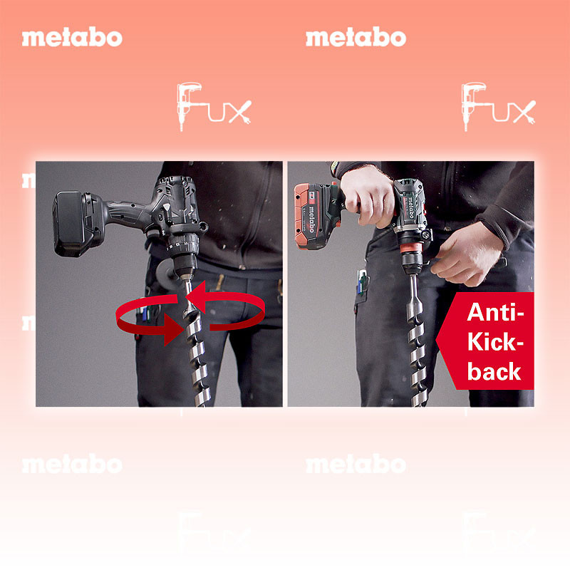 Zu "LTX SERIE" von Metabo FULL Service: 36 Monate zum Nulltarif für Sie! Weitere Infos zum FULL Service Dieses Produkt ist CAS kompatibel! Weitere Infos zu CAS Metabo SB 18 LTX BL Q I Akku-Schlagbohrmaschine Bestell- und Artikelnummer: 602361850 Bürstenloser Akku-Schlagbohrschrauber mit maximaler Leistung für schwerste Anwendungen Schlagbohrfunktion zum Bohren in Mauerwerk Metabo Quick-System: Schnellwechsel von Werkzeugaufnahme und Einsatzwerkzeug für flexibles Arbeiten Zuschaltbarer Impulsbetrieb zum Herausdrehen festsitzender Schrauben und Anbohren auf glatten Oberflächen Precision Stop: elektronische Drehmomentkupplung mit erhöhter Präzision für exaktes, feinfühliges Arbeiten Überlastschutz: schützt den Motor vor Überhitzung Elektronische Sicherheitsabschaltung: kein Kick-Back beim Blockieren des Bohrers - für hohen Anwenderschutz Integriertes LED-Arbeitslicht mit Nachleuchtfunktion für optimale Helligkeit im Arbeitsbereich Mit praktischem Gürtelhaken und Bitdepot, wahlweise rechts oder links fixierbar Ergattere dir einen Akku bei der Registration auf metabo.ch Alle Produkte dieser Aktion anzeigen OHNE AKKUS UND LADEGERÄT Technische Daten Art des Akkupacks LiHD Akkuspannung 18 V Akkukapazität 2 x 5.5 Ah Max. Drehmoment weich 65 Nm Impulsmoment 65 Nm Max. Drehmoment hart 130 Nm Einstellbares Drehmoment 1 - 20 Nm Bohr-Ø Mauerwerk 16 mm Bohr-Ø Stahl 13 mm Bohr-Ø Weichholz 68 mm Leerlaufdrehzahl 0 - 550 / 0 - 2000 /min Max. Schlagzahl 38000 /min Bohrfutterspannweite 1.5 - 13 mm Gewicht (mit Akkupack) 2.4 kg Standard-Ausrüstung Schnellwechselbohrfutter Zusatzhandgriff Gürtelhaken und Bitdepot Zubehör Verbrauchsmaterial Listenpreis CHF 315.00 Fuxpreis CHF 268.00 inkl. 8.1% MwSt, inkl vRG Frankolieferung Kein Grauimport! Produkt bestellen 1 Stück 2 Stück 3 Stück 4 Stück 5 Stück 6 Stück 7 Stück 8 Stück 9 Stück 10 Stück Alle Angaben ohne Gewähr und solange Vorrat reicht!Wiederverkäufer werden?Lehrlingsrabatt? Produkt als PDFVideo LiHD 1Video LiHD 2 360° Ansicht AKTION 15%