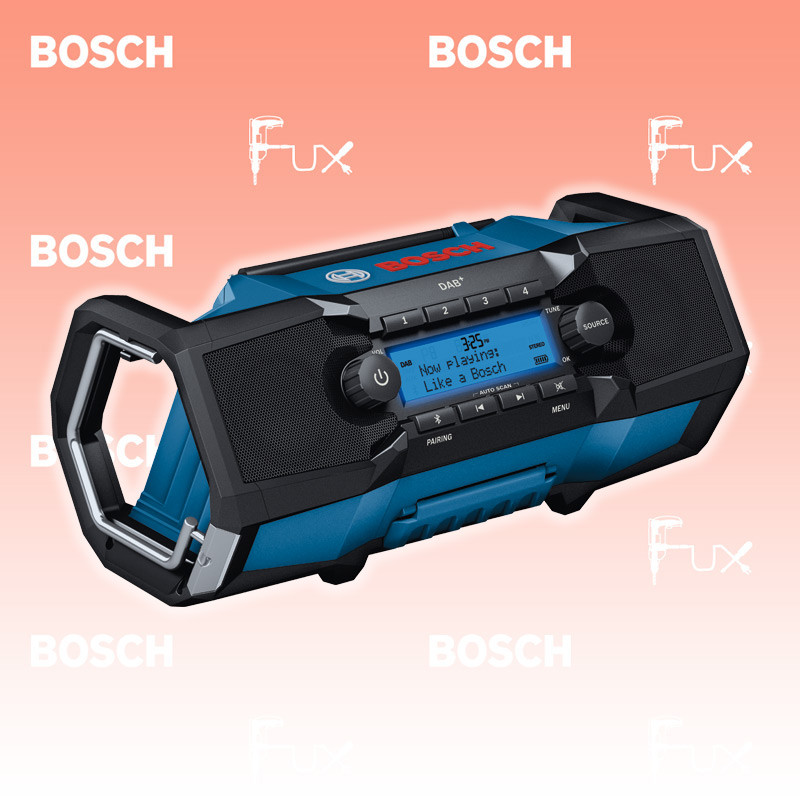 Dieses Radio wurde für digitalen Radioempfang und die Wiedergabe von Musik über Smartphones entwickelt. Das Gerät ist mit Bosch Professional 18V-Akkus kompatibel (1,5 bis 8 Ah).